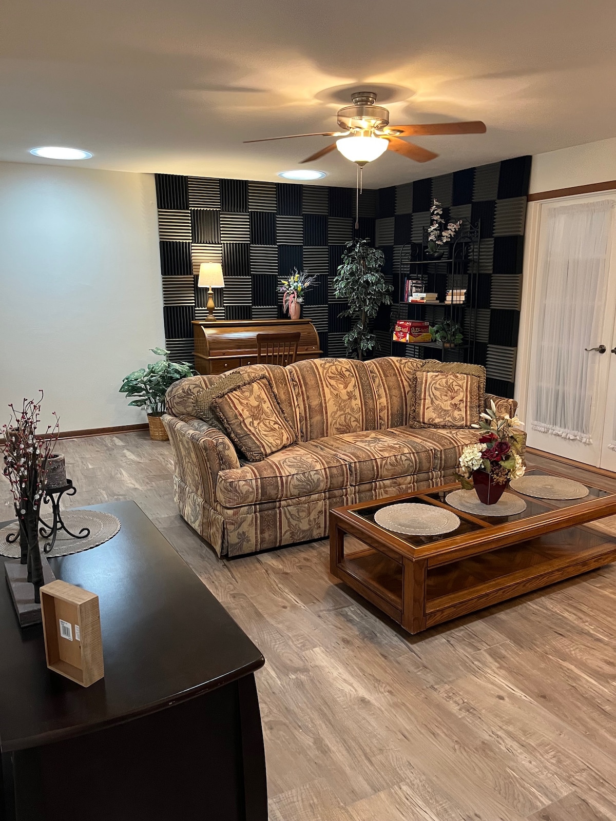 Creative souls love my marvelous studio retreat, a delightful one-room loft-style space featuring tall ceilings, an entire wall of sliding glass doors, kitchenette, piano, and an expansive view of a picturesque barn, pasture, and wooded hills. This amazing, heated, spacious country getaway has no plumbing— it's just a few steps across the yard to the main house guest bathroom. Come create, relax, and renew here! Well-behaved dogs, included in your reservation, must be leashed when outside.