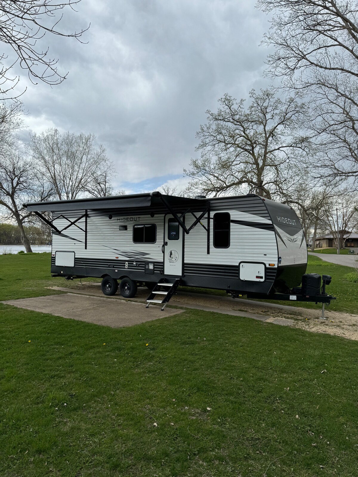 Beautiful views everywhere as you overlook the St. Croix flowage in this Wisconsin Northwoods camper. Full KITCHEN. Full BATHROOM. Comfortably sleeps 6 people. Outdoor deck, grill, and firepit. WiFi internet. Dock Access and Boat Slip included. This lake is one of the best-kept secrets in Northern Wisconsin. No cleaning fees or no Airbnb fees (Host pays them)! Enjoy the peace & quiet, book your getaway now! p.s. book for 6 days and get the 7th for free!