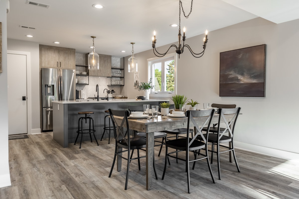 Welcome to The Bentley Hotel, a luxury selection of townhouses decorated with everyone in mind. We aim to provide a quality experience and memories that will last a lifetime. This townhome is finished with top of the line amenities including a 60” smart TV, board games, organic coffee and teas, a full kitchen with Caraway non-stick pans, workout mats, dumbbells and more. This is your new home away from home and the perfect place to gather whether you are in town for business or pleasure!