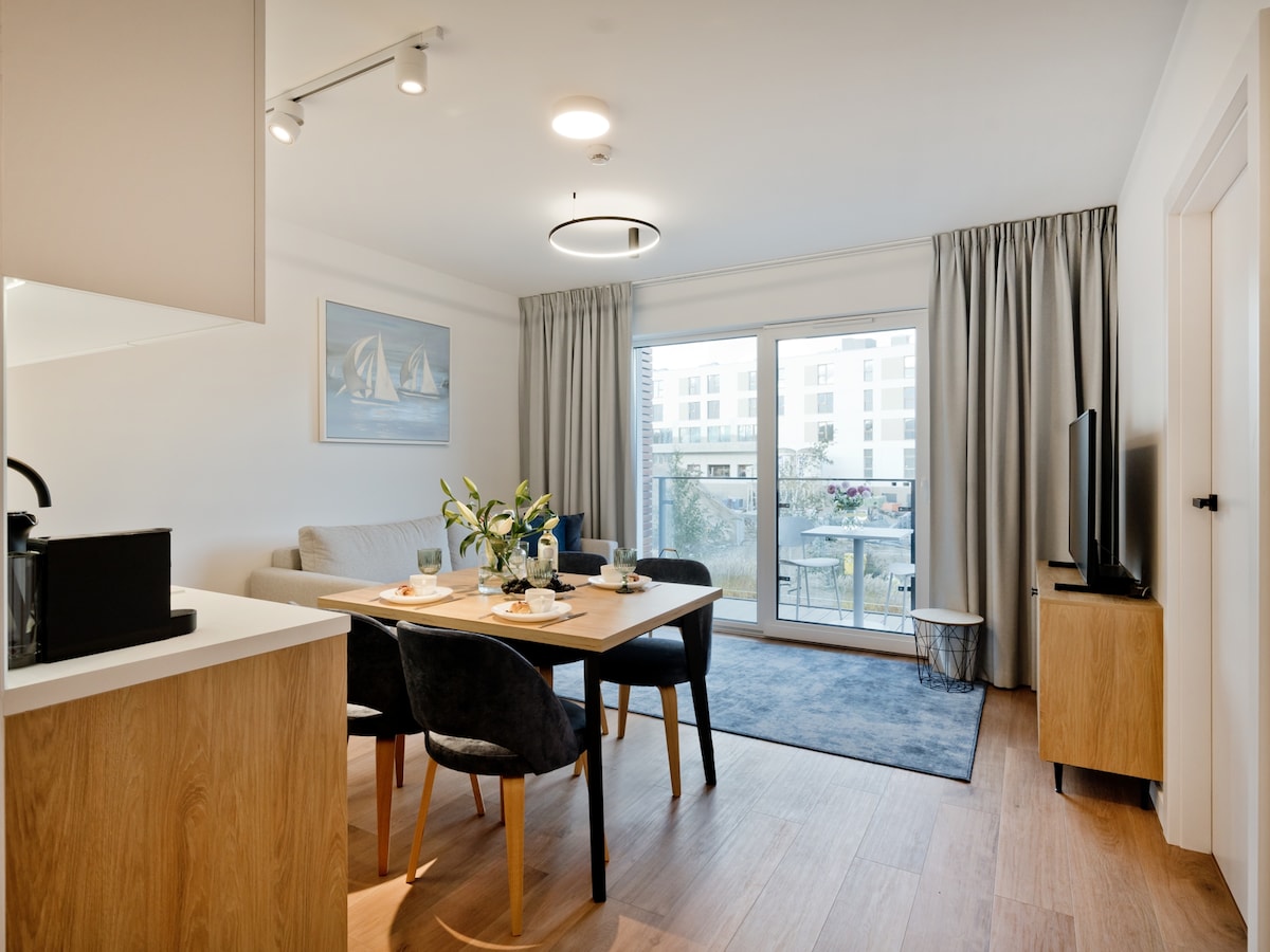 Wyjątkowy apartament z widokiem na morze, położony w miejscowości Mechelinki. Nowy apartament z 2022 roku wykończony w wysokim standardzie, urządzony w morskim stylu. Apartament składa się z 4sypialni na piętrze i antresoli z widokiem na morze, przestronnego salonu z aneksem kuchennym, dużej łazienki i oddzielnej toalety. Dla gości dostępny jest ogródek i dwa bezpłatne miejsca parkingowe. 10 minut spacerem do molo w Mechelinkach, morza, klifów, rezerwatu natura 2000, kawiarni i restauracji