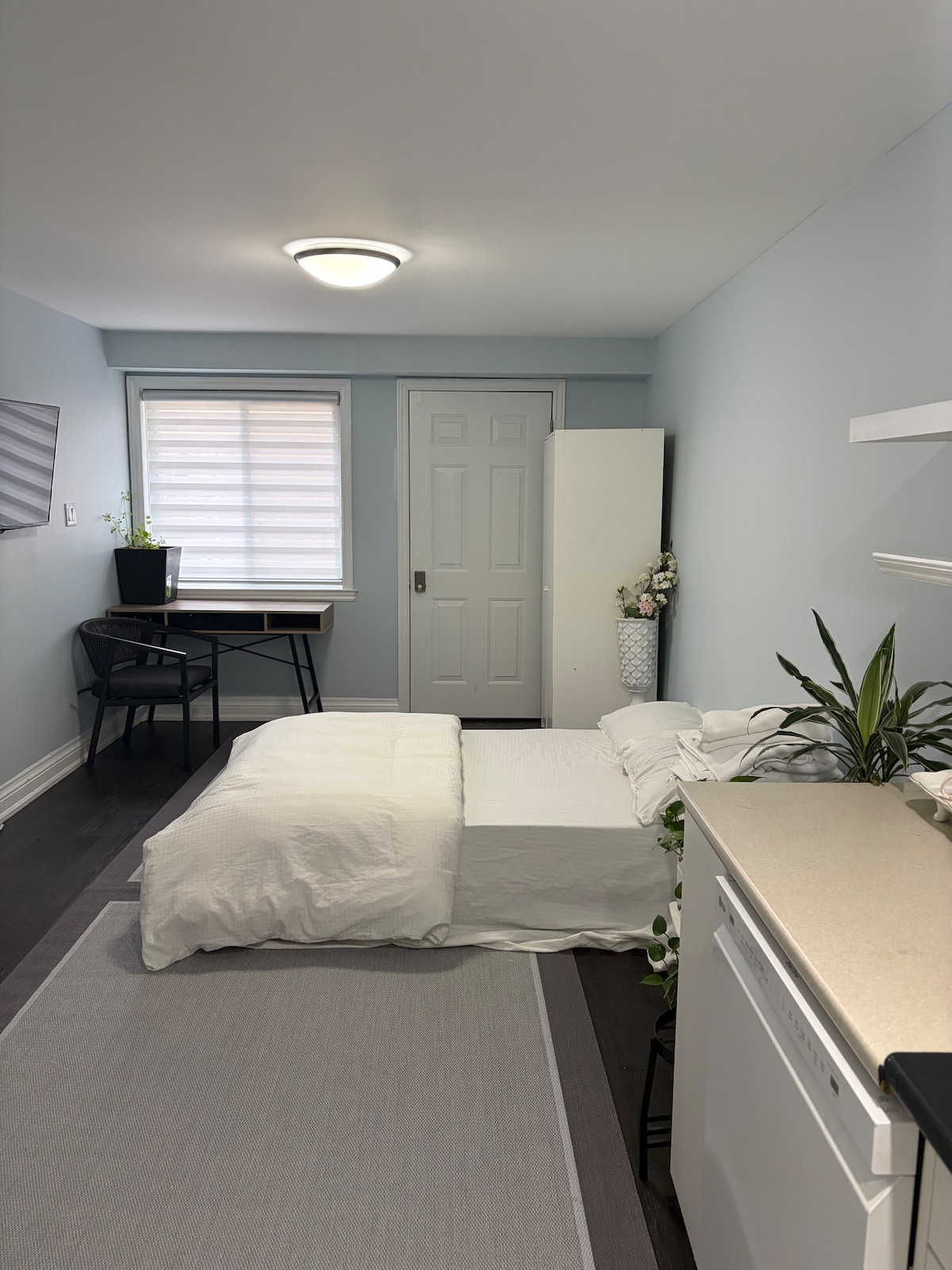 Take a break and unwind at this peaceful oasis. This is a rare gem as the bedroom, bathroom and kitchen are all private, for an affordable price. It is very simple and some of our personal belongings are in the space but we keep the price low to make up for it. Most rentals in this area of Toronto have shared bathroom or kitchen or are very expensive. Within walking distance to Parkway Mall. 5 minute drive to the 401 or DVP which will take you to downtown Toronto in 25 minutes (if no traffic).