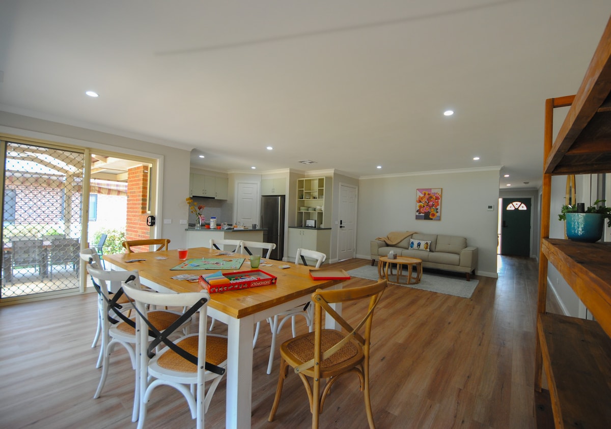 Newly Renovated Interior. Lge Main Bedroom with King Bed, a 42"TV and Workspace. A Queen Bedroom & Bunk Bedroom. Ample Robe Space. Sleeps 6. Fully Appointed, Functional Kitchen & Laundry. Super Comfy Lounge, 60" TV. Free WI FI & Netflix. Split Air Con, Fans in Bedrooms & Living. Relax on Front Porch, Entertain Undercover in the Lge Secure Backyard. 1km, CBD and Restaurant Hotel Cafe precinct. 1km to Wod. Plaza, Sumsion Gardens & Playground, and Wod. Tennis Centre. Children welcome. Dogs also :)
