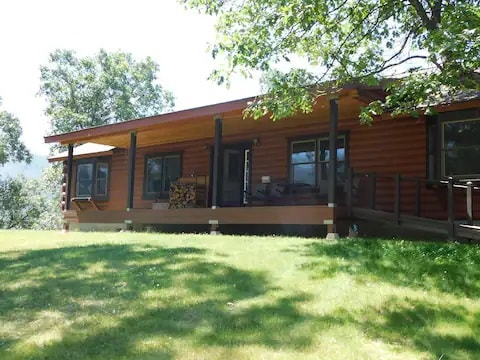 Beautiful, spacious, secluded, 3 bdr 2 bath fully equipped guest log cabin for 6 on our 54-ac. horse ranch. At 4900' in the Sequoia National Forest. Sleeps 5-6 guests MAX. Beds, 1 queen, 1 full, 2 twins. Lots of extra kitchen appliances. Front porch & back deck with views of forest & stars! Summer & winter mountain sports can be enjoyed. Pets or horses allowed w/fees. Bring carrots if you want to feed our horses. Explore trails and sites on ranch & surrounding Seqouia National Forest trails.