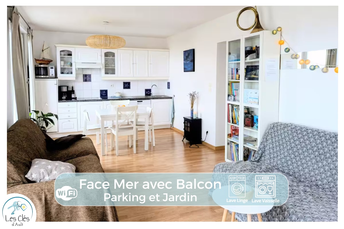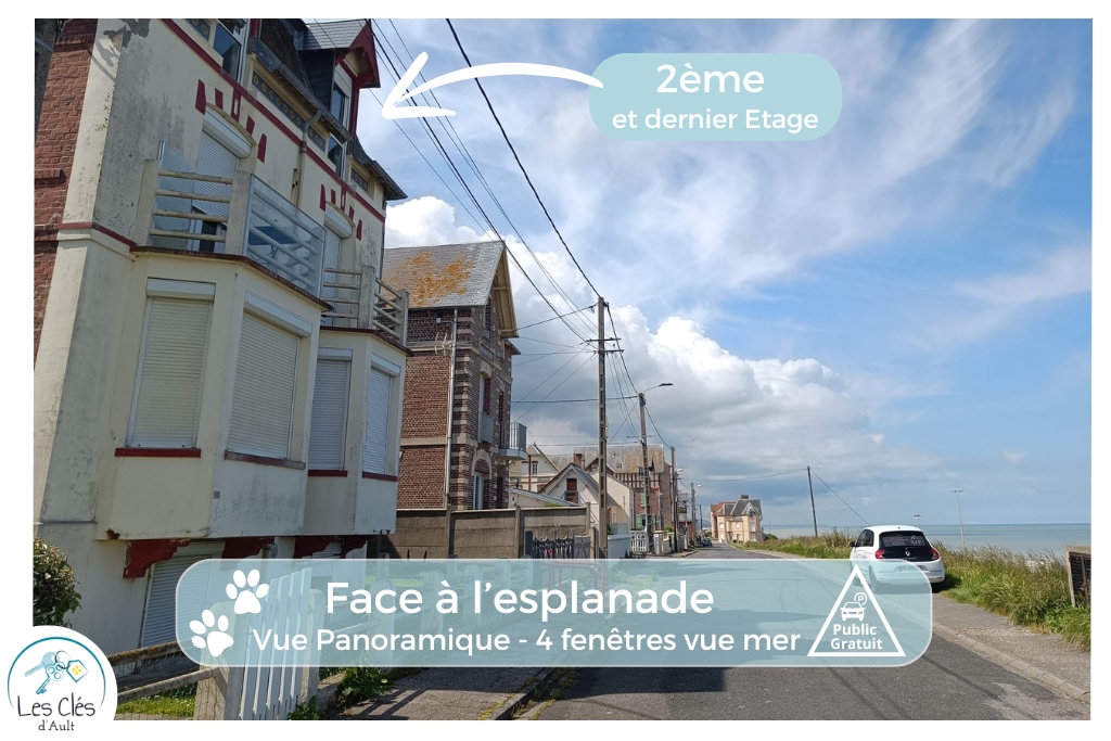 Appartement entièrement équipé, situé au 1er étage d'une jolie villa surplombant la mer... vous offrira un spectacle de couleurs à toute heure du séjour mais aussi de la chambre. Dépaysement assuré!!!Idéalement situé entre Mers-Le Tréport et Saint Valéry- Le Crotoy, il vous permettra de découvrir notre magnifique région pleine de nature et de saveurs. C'est l'endroit rêvé pour vous détendre en famille ou amis.