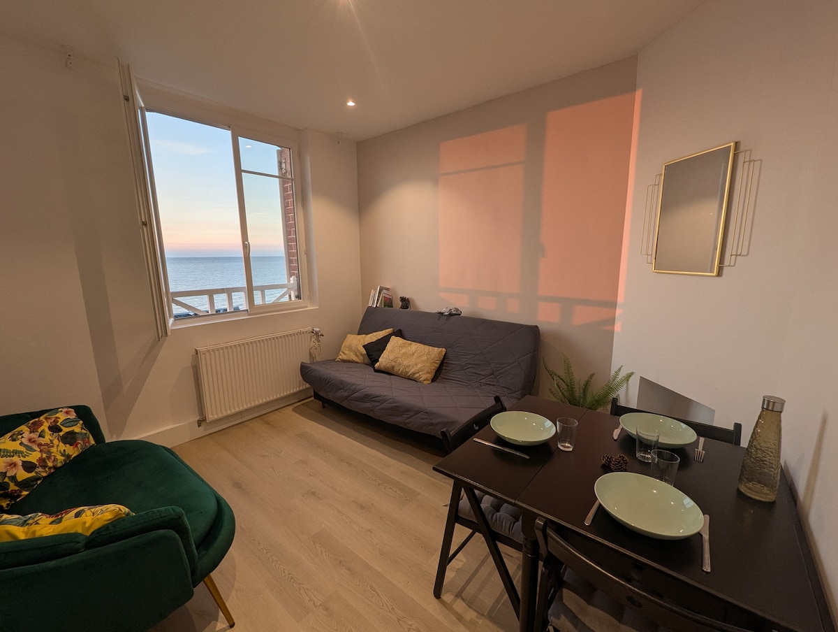 Appartement entièrement équipé, situé au 1er étage d'une jolie villa surplombant la mer... vous offrira un spectacle de couleurs à toute heure du séjour mais aussi de la chambre. Dépaysement assuré!!!Idéalement situé entre Mers-Le Tréport et Saint Valéry- Le Crotoy, il vous permettra de découvrir notre magnifique région pleine de nature et de saveurs. C'est l'endroit rêvé pour vous détendre en famille ou amis.
