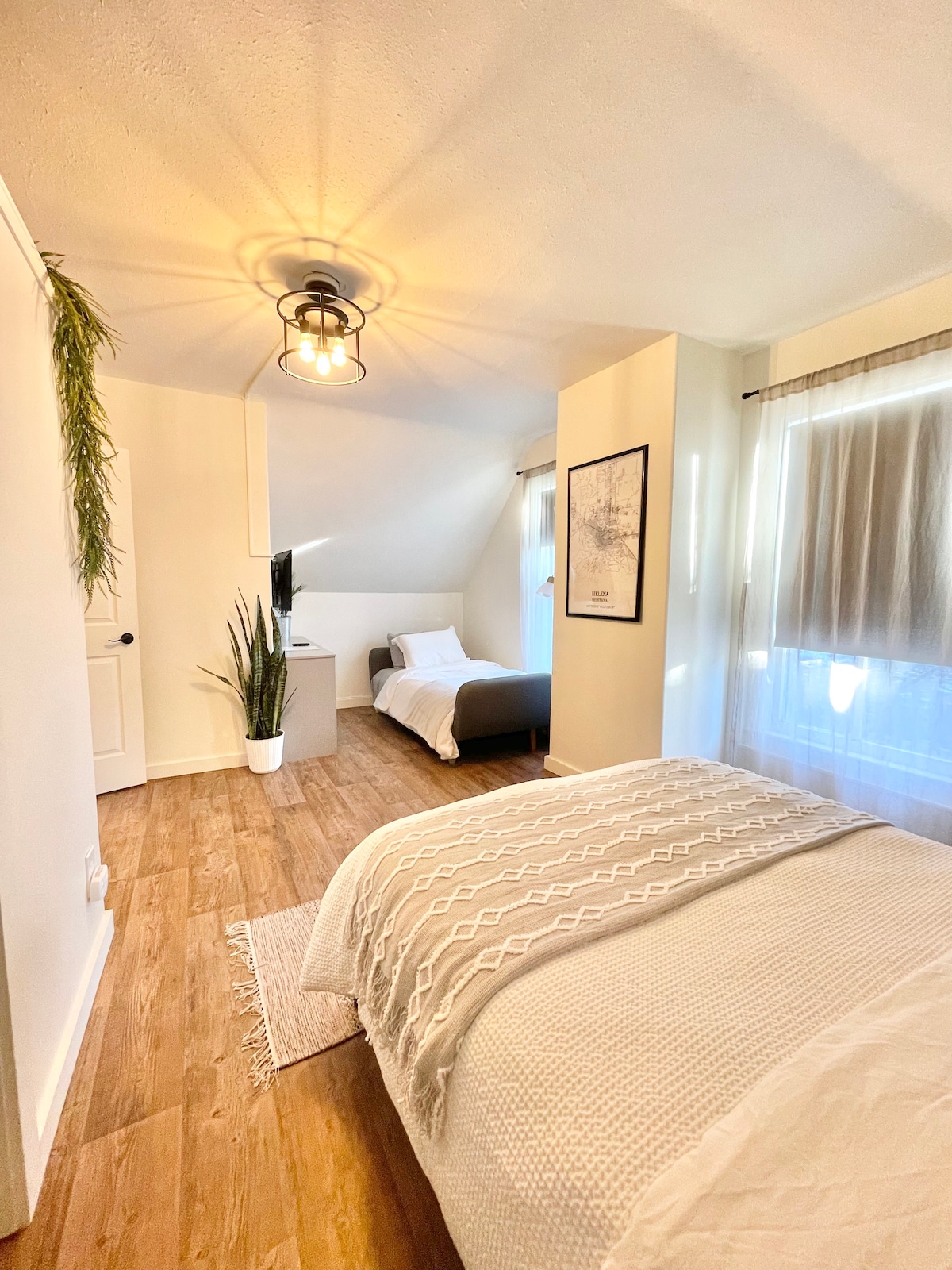 Tuck into a peaceful home-away in this spacious and serene space just a few minutes walk from downtown Helena or the hiking and biking trails of Mount Helena. This daylight walkout basement faces a large yard with mature maple trees and substantial off-street parking. The kitchen has been stocked with necessities for easy cooking during your stay. Bring your favorite coffee, we have a grinder.