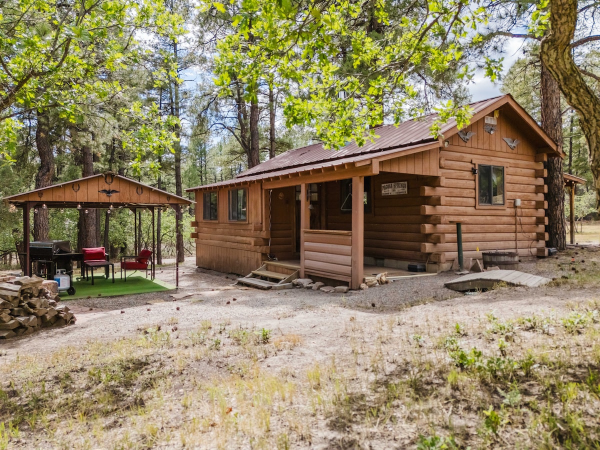 This pristine little Scandinavian D-log cabin sits on over 2 quiet wooded acres a brief 5-minute drive from uptown Pagosa (our more commercial area with nicer grocery store, dining, brewery, Walmart, etc) and about 10 minutes to the springs (downtown). Your experience is enhanced with a gas grill, outdoor seating/dining table, fully outfitted kitchen, and even a clearing for campfire and stargazing. Deer and wild turkeys are frequent visitors. Great place to unplug and unwind. VRP-25-0258