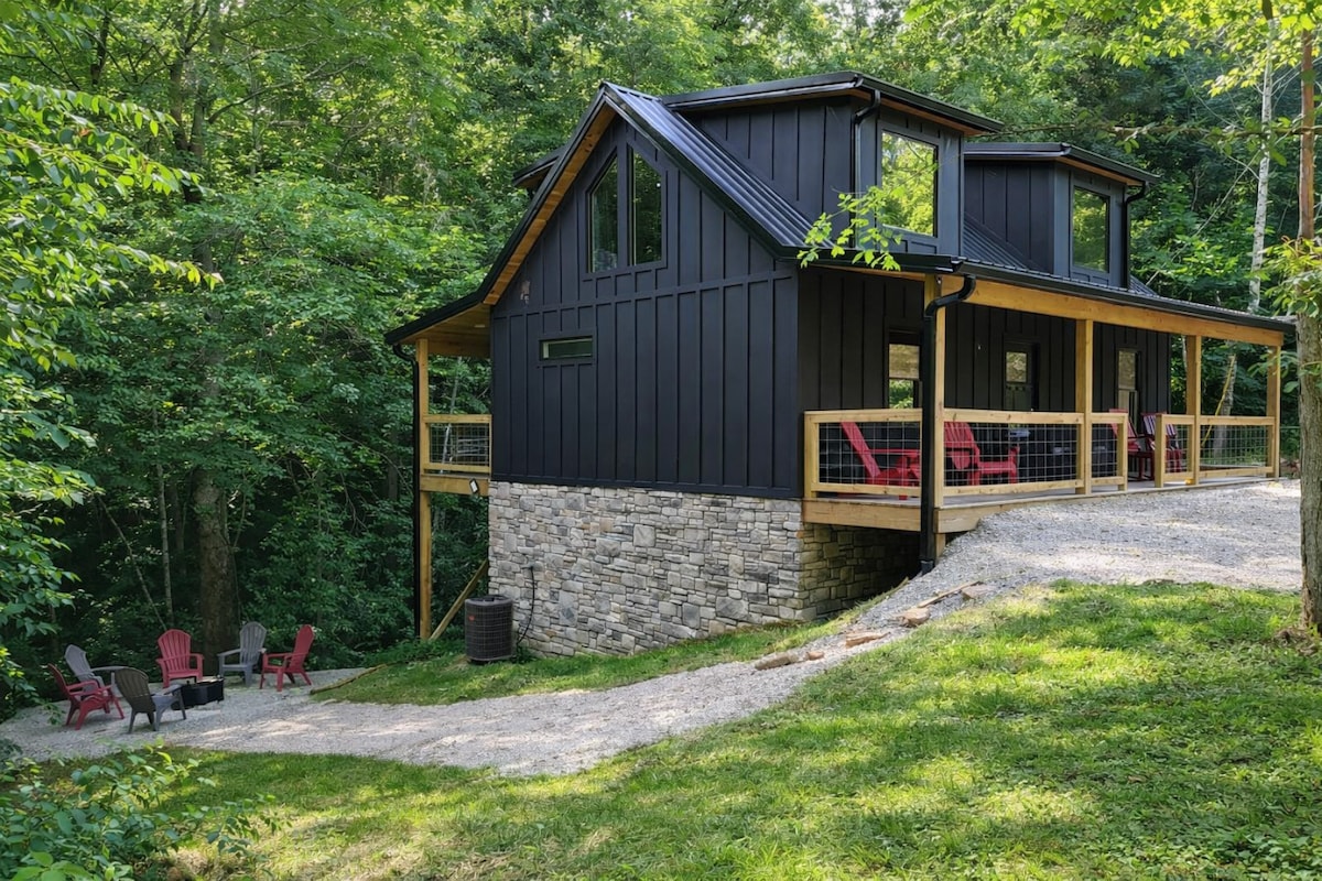 Welcome to The Raven! A luxurious all black A-frame cabin in Red River Gorge Kentucky, just 10 minutes from Natural Bridge State Park, Miguel's Pizza, and Muir Valley. We built this cabin to be so cozy you'll never want to leave. Spend the day exploring the world famous hiking trails and rock climbing, and your evening soaking up the forrest in the hot tub. Enjoy the views and peacefulness for a romantic getaway. For weddings at The Greenhouse / Appalachian Rose Farm this is the place to stay!