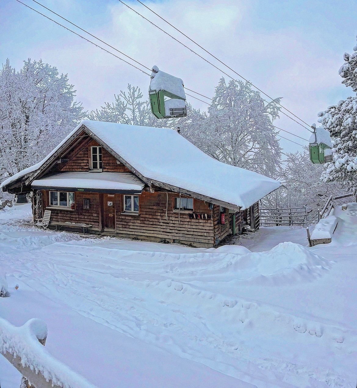 山中小屋远眺的缆车探险