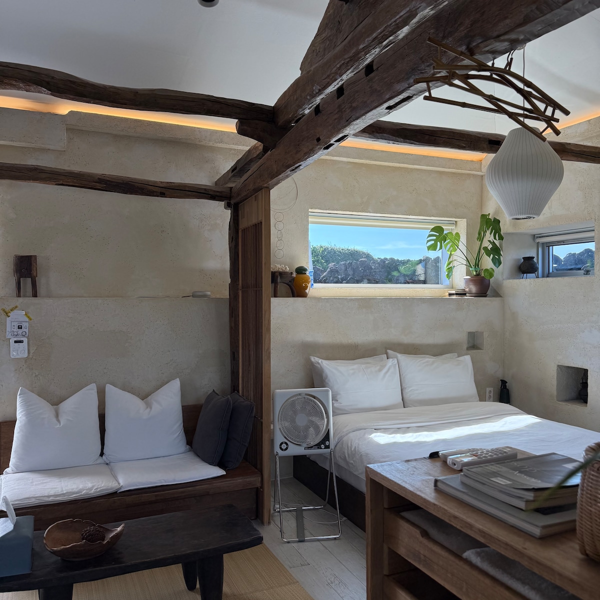 It is located in the east of Jeju Island. It is Haengwon-ri, close to the famous Woljeong Beach. The exterior is surrounded by stone walls. It is a comfortable and comfortable accommodation with modern comfort. It's quiet outside the window and you can see the countryside of Jeju Island. With Jeju Island's unique nature and quietness It's the perfect accommodation to relax alone with friends and lovers. There is a small house and a big house The house you're looking at is a "small house."