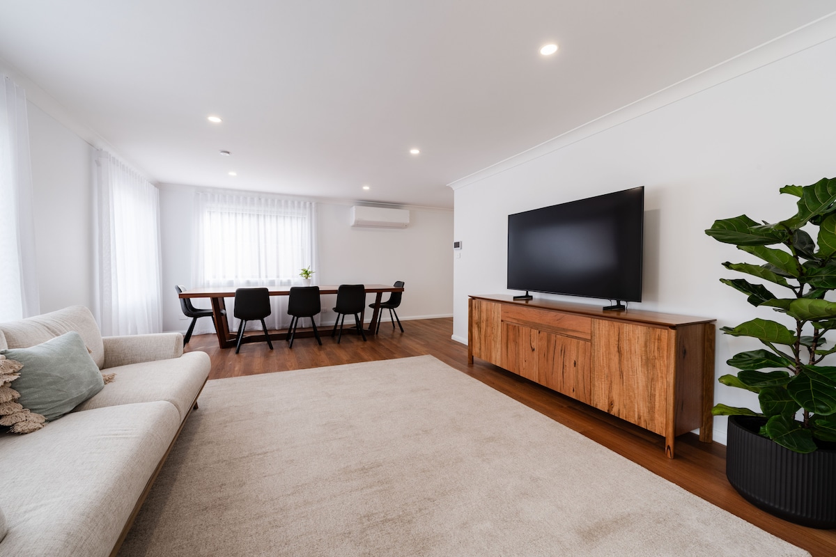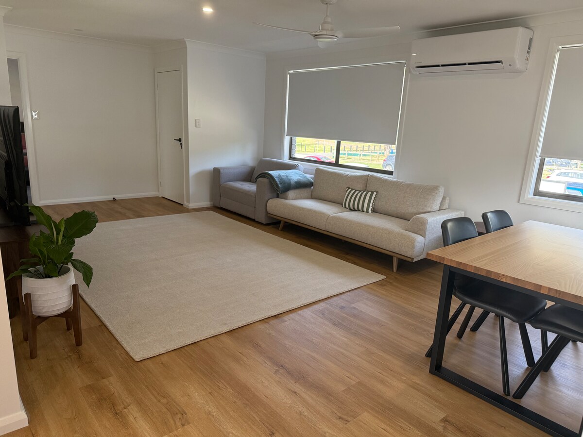 Welcome! Brand-new luxury retreat featuring a beautifully designed private bedroom + built-in vanity with basin, modern bathroom, TV, Wi-Fi, & central AC with fan & heater. Guests can use a modern shared kitchen & dining areas, & BBQ backyard garden. Located in the heart of Edmondson Park, with bus stop at the door, train station, Ed Square, Cinemas minutes away, & 40–45 mins direct to the city. Clean, family-friendly 5-star stay.Extra bed available for kids or additional guests (fees apply).Tnx