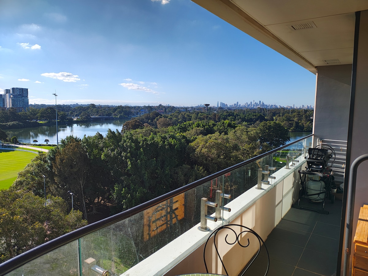 美丽湖景舒适三房时尚公寓/200米火车站/5分钟国际机场/12分钟市中心/步行至购物中心餐馆咖啡馆