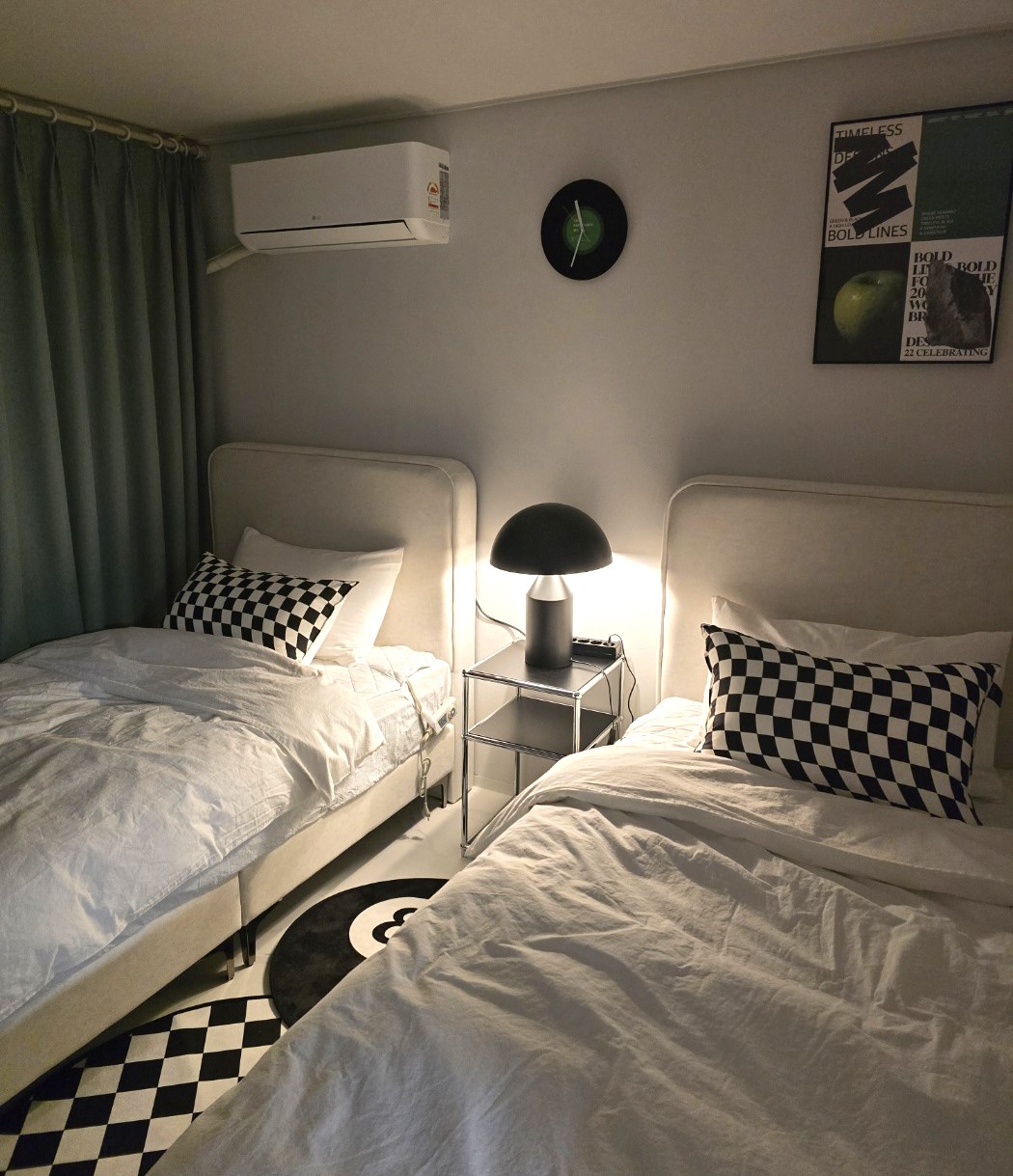 黄里丹路6分钟/东宫月子和庆州世界10分钟/宽敞的6人住宿/3间客房/3张大床/4台空调/免费停车/酒店床上用品/