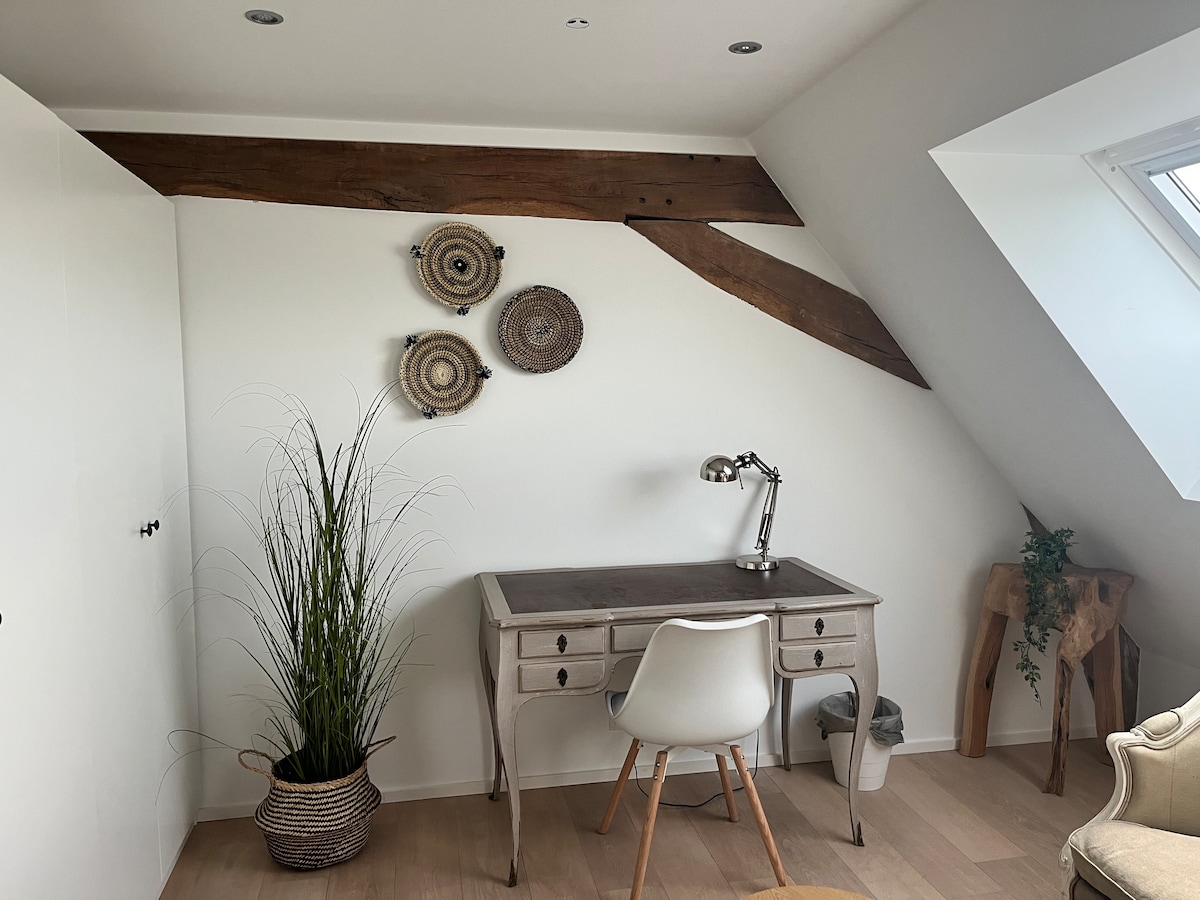 Lumineux grenier à foin rénové en 2021, au 1er étage de nos bureaux, avec belle vue sur nos potager et verger. Accès privé à un studio de 40m2 (avec 1canapé-lit, 1table à manger+frigo,micro-ondes,café,thé,eau,1bureau, 1salle de douche+WC), 🅿️gratuit dans la cour et accès privé à votre jardinet de charme avec chaises,table&transat. En option payante:recharge électrique,vélos, prairie clôturée avec box+eau pour max2 chevaux. Merci pour votre confiance, on se réjouit de vous accueillir. L&N