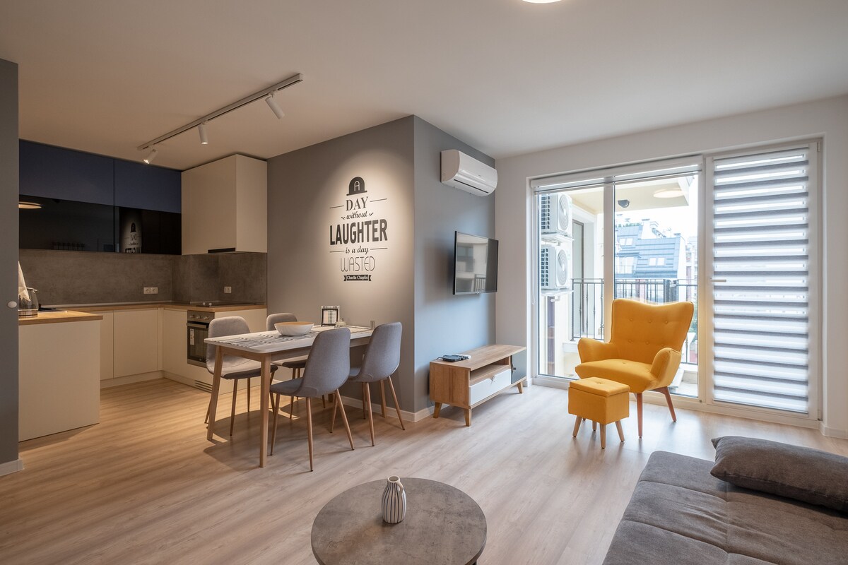 时尚的市中心公寓,带阳台,靠近地铁站。