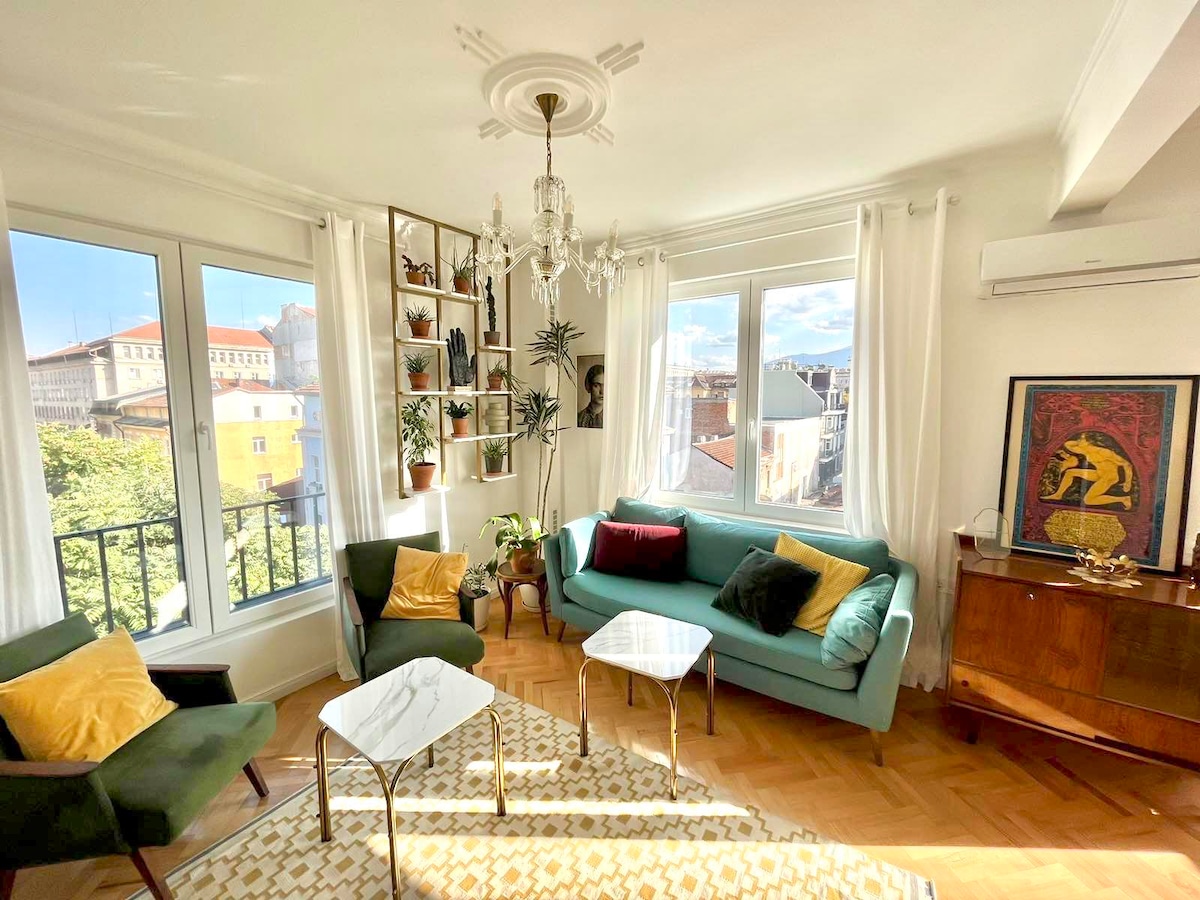 Enjoy a bright and stylish apartment in the heart of Sofia’s historic center! Relax in a cozy space with artistic touches and beautiful morning light from the French windows while you have your coffee. Perfect for both vacation and work stays — the apartment includes fast 300 Mbps internet and a comfortable work area. Step outside and explore Sofia’s authentic atmosphere at the nearby farmer’s market — the city’s largest, full of local charm, great prices, and creative energy.