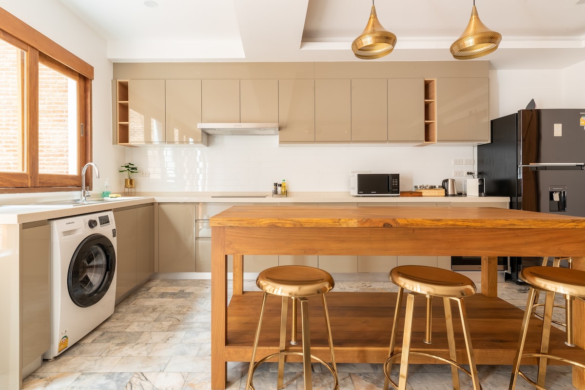 Rest and relax in your Resort Style Oasis. Your group will be minutes from the Chiang Mai attractions and just steps from dozens of restaurants and local shops! A few things you'll love: ★Resort style Pool, 2 stylish cabanas, (shared & spacious), putting green, 7 foot pool table ★Superb Location. Walk to dining and local shops. 5 minute drive to Meechok. Jet into Old City or Nimman in 15-20 minutes ★Fantastic open concept living, kitchen & dining; Large private patio ★Professionally cleaned