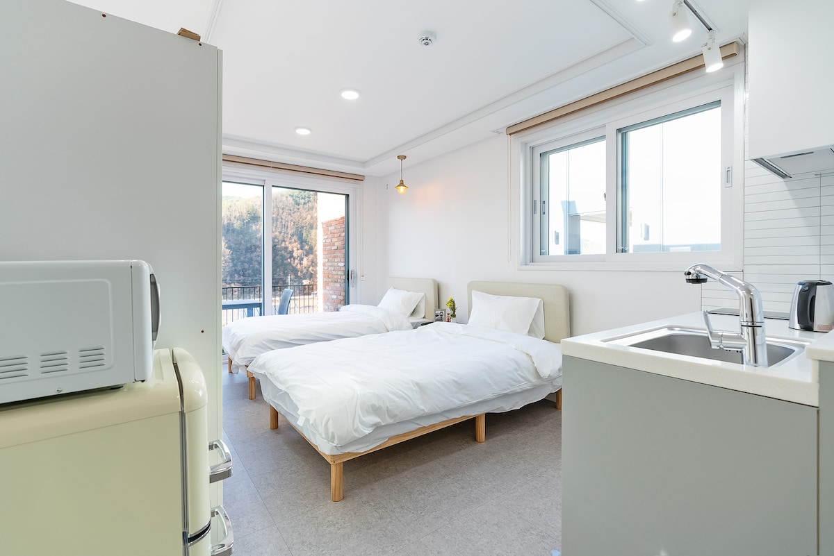 豪华韩式暖砖房(通往Vivaldi Park的路口,最多可容纳4人,独立阳台,独立停车位,独立房源,可连通)