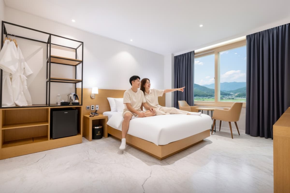 🏨 숙소 소개 원주 중심의 감성 호텔, 아늑하고 세련된 객실에서 편안한 휴식을 즐기세요! 고속버스터미널·편의시설 도보권에 있어 교통·편의성 모두 최고입니다. 🛏️ 객실 • 깔끔하고 감각적인 인테리어 • 편안한 침대 & 필수 어메니티 (TV, 무료 Wi‑Fi) • 일부 객실엔 욕조 또는 루프탑 공간 옵션도 제공 • 전 객실 금연, 쾌적한 실내 환경 제공