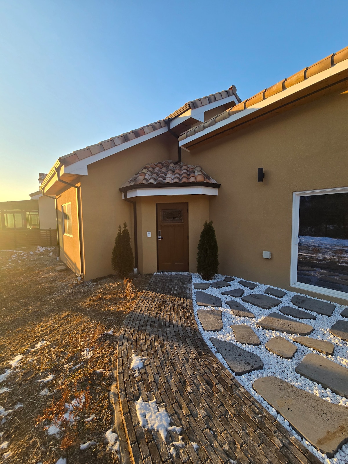 도시의 힘든 삶에 지친 분들을 위한 휴식처가 되길 바랍니다. 황토 한옥집을 리모델링하여, 집 전체가 살아숨쉬는 듯한 느낌을 받으시며 힐링이 가능합니다. 다른 공간과 비교할 수 없는 가만히(家滿喜)만의 특징 1. 인공 판넬 또는 스티로폼재가 없는 순수 황토집으로 건강한 힐링을 약속합니다. 2. 주변 이웃이 보이지 않는 단독주택 활용을 통해 개인 또는 가족만의 휴식을 만끽하세요. 3. 용문산 조망이 가능한 테라스에서 티타임을 가져보세요. 4. 현관 앞 공간에서 자연의 소리를 들으며, 바베큐 또는 불멍이 가능합니다. 5. 넷플릭스, 디즈니플러스 등 다양한 OTT를 프로젝터, TV, 태블릿을 통해 감상할 수 있습니다. 6. 세탁기/건조기/식기세척기/닌텐도 스위치 등 편의 시설이 완비되어 있습니다. * 내부는 25평 규모로 숙소는 4인이 가장 적절하지만, 침구류는 추가로 마련되어 있습니다. (소아 포함한 6인 가족까지는 수용가능합니다)