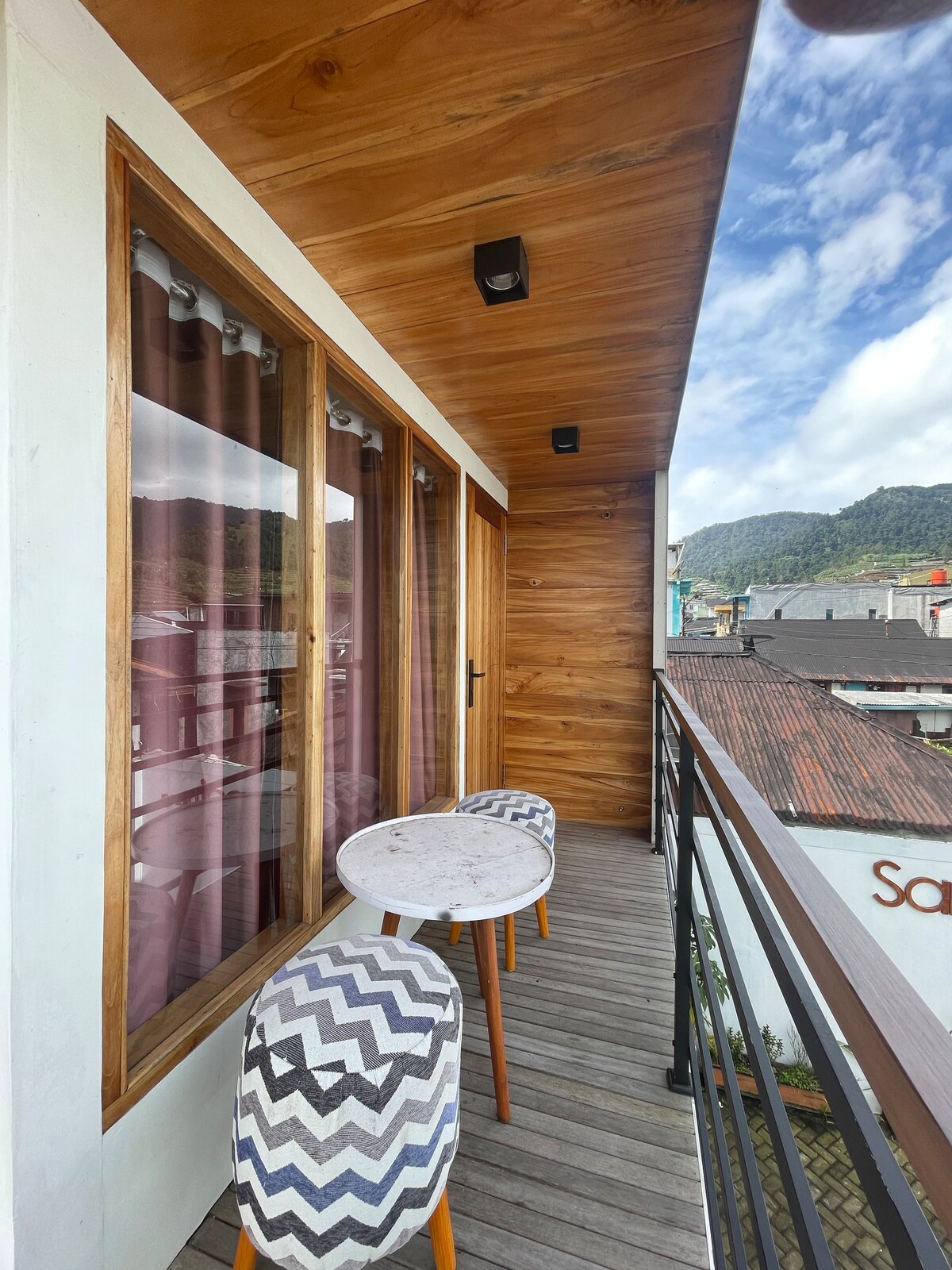 Homestay luas untuk kapasitas hingga 15 orang dengan 3 KT + 2 KM dan memiliki lantai mezzanine yang dapat melihat view Gunung Sindoro. Terletak di kawasan yang sejuk dan dekat dengan berbagai wisata alam Wonosobo dan Dieng. Terdapat fasilitas karaoke dan halaman belakang luas yang bisa digunakan untuk berolahraga.