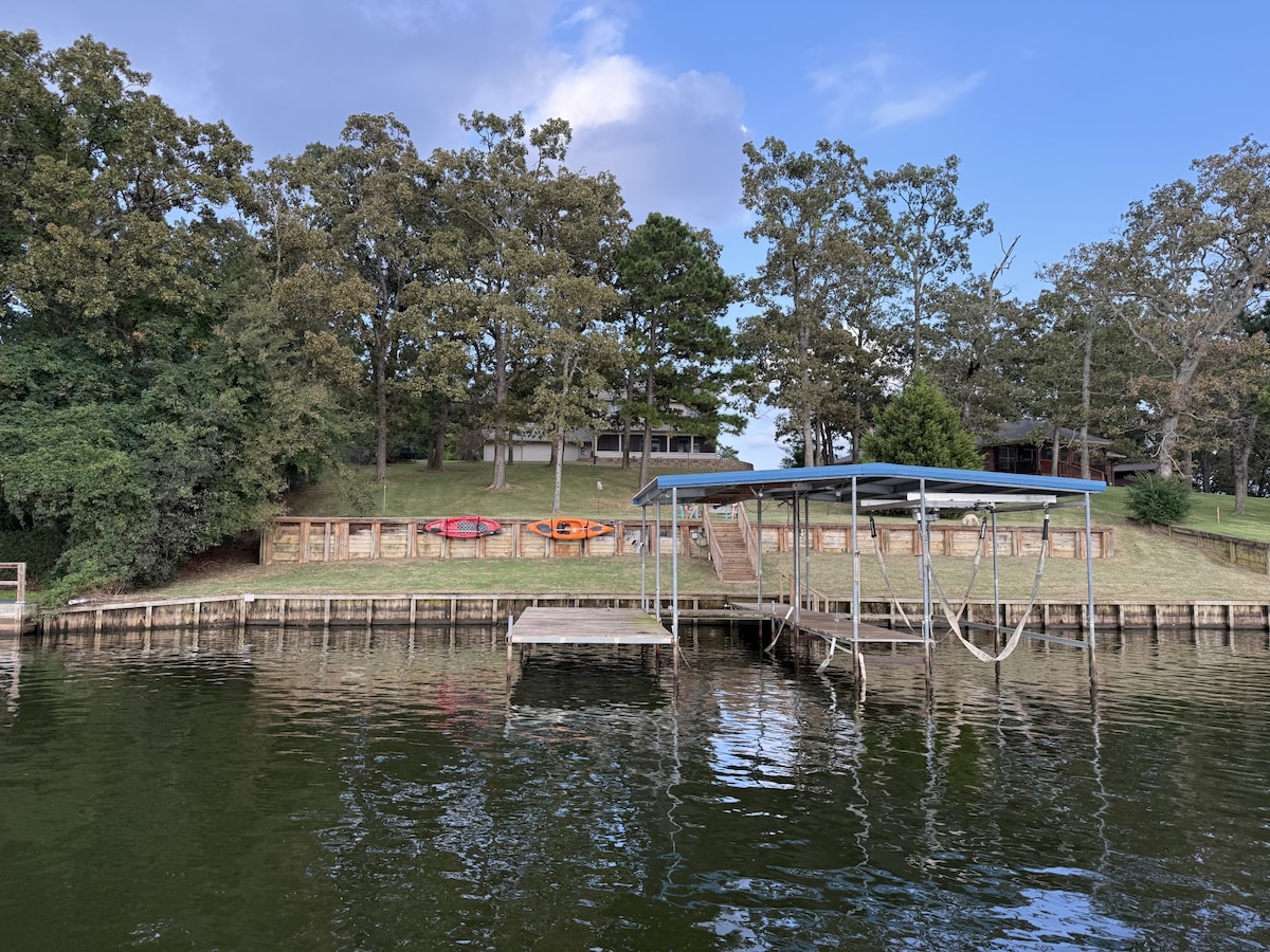 Take it easy at this newly renovated, tranquil getaway on Lake Hawkins. We’re sharing our lakefront home so others may enjoy the nice, clear water for swimming, fishing, boating, skiing, kayaking; you name it! Fish off our boat dock, swim in our sandy shore area, float around, or borrow our kayaks. There are nearby public boat ramps, a public sandy beach area, camp ground, & RV park, too. There are also restaurants right on the lake as well as nearby. *More nights booked = cheaper nightly rate.
