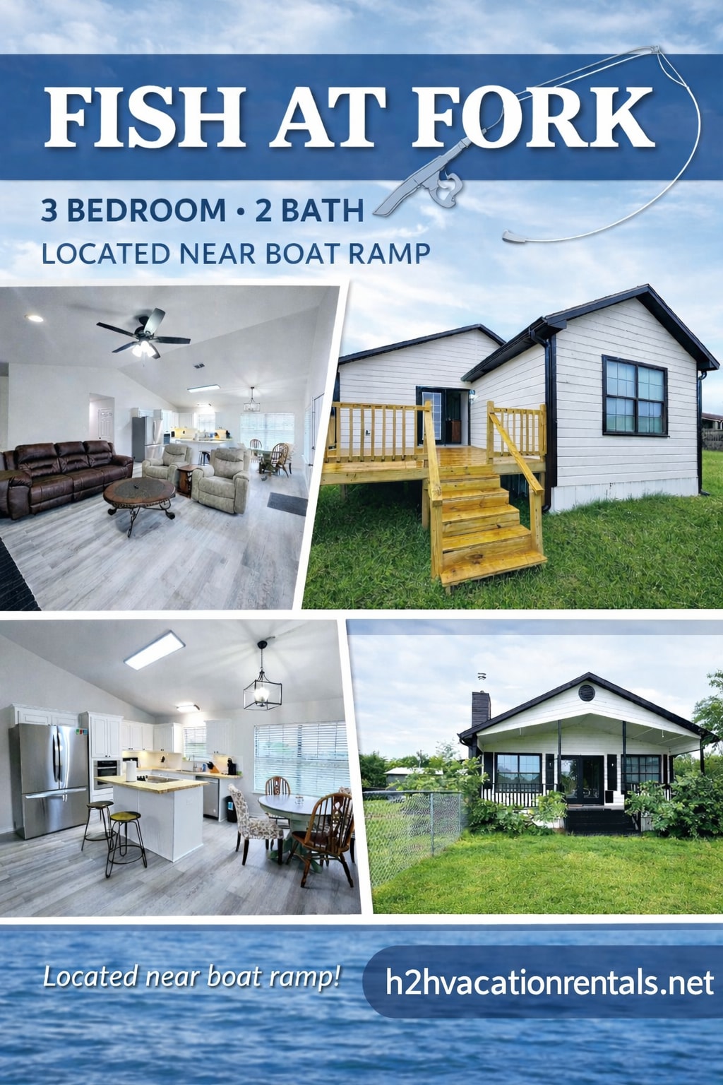 The Great Escape is on the shore of beautiful Lake Fork in Emory, Texas. It's a charming 3 bedroom, 2 bathroom house with wood beams, shiplap walls, and more! The backyard boasts a large covered porch with grill, a beautiful pergola with individual swings, and a large covered dock with boat slip as well as covered and uncovered seating areas. The Great Escape is situated in a quiet, private neighborhood and is perfect for a guys' fishing trip, a girls' get together, or any getaway you choose!