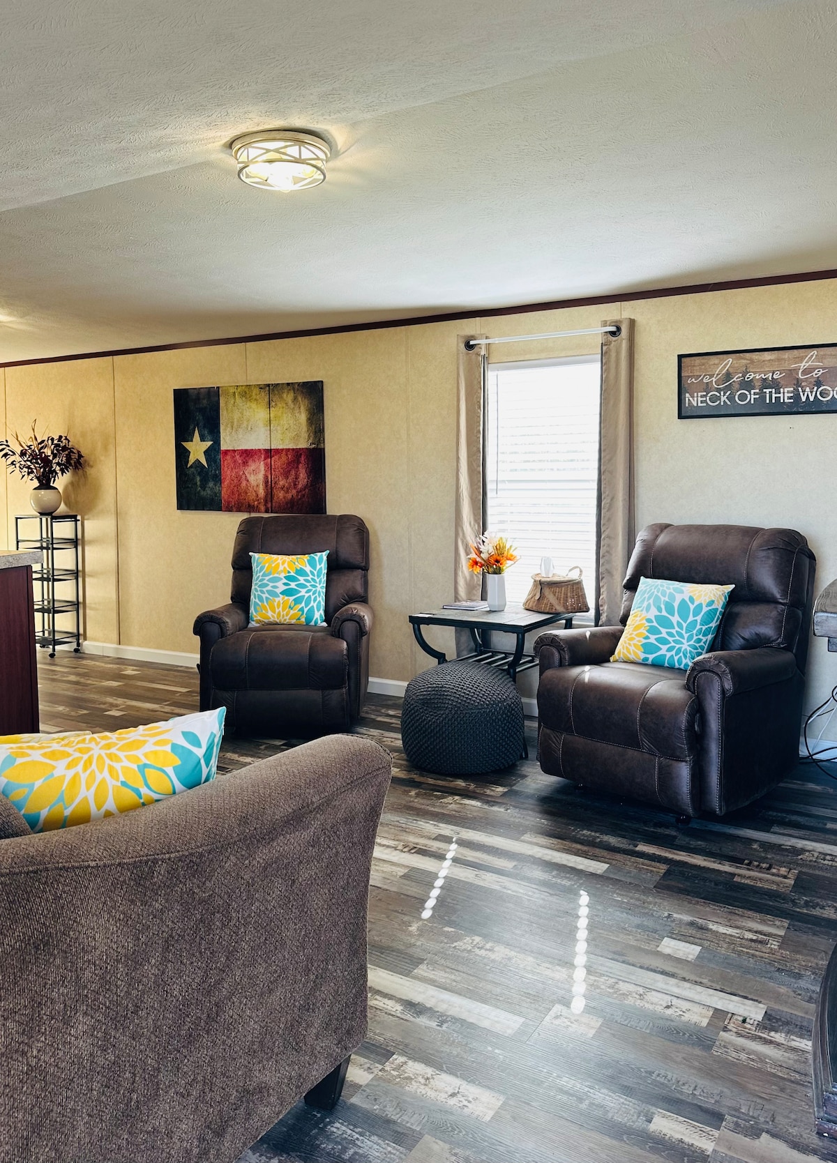 3 b, 2 ba house nestled in the gated resort community of Holly Lake Ranch. This 1700 sq. ft home has an open floor plan and is great for family gatherings or entertaining. Western motif is perfect for a guys weekend of golf or fishing! Guests can enjoy community amenities such as: 18 hole golf course, lakes, fishing, tennis and pickleball courts, miniature golf course, swimming pool, gym, restaurant, and other outdoor activities. Pets ok!