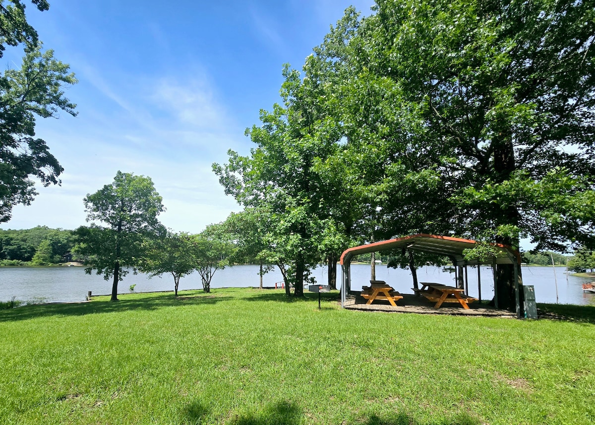 PRIVATE Guest house with QUEEN bed and TWIN bed and 1 Bath. WATERFRONT views of the beautiful LAKE FORK! 2 Miles to Caney Point Boat Ramp and Pavilion. This space has full kitchen, living area, and gorgeous views from the covered patio, gazebo, and access to the water from the boat house! Fishing from the pier or docking your boat makes this hideaway perfect. Licensed service animals only-not pet friendly. Non smoking, non vaping property. Can sleep up to 3. Bookable for 1-7 nights