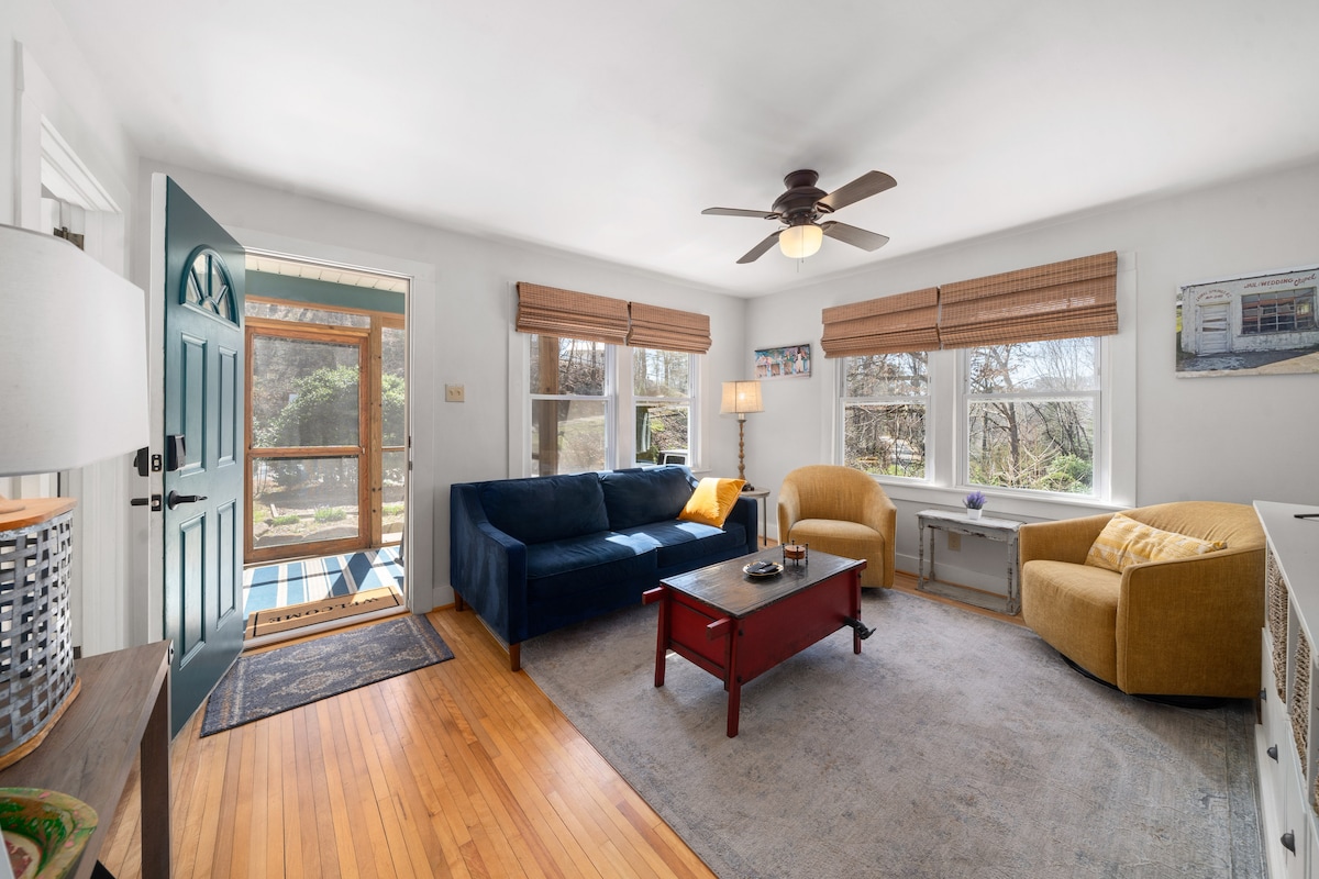 Set sail in this cozy, light-filled Asheville studio lovingly known as The Pirate Ship. This thoughtfully designed retreat features a queen bed, kitchenette with coffee & tea, and a spa-style shower. Enjoy your morning brew at the outdoor bistro table or write from the small desk inside. With private entry, peaceful seating, and a location walking distance to downtown, West Asheville, and the River Arts District. This compact retreat feels like stepping aboard a tiny ship built for calm seas.