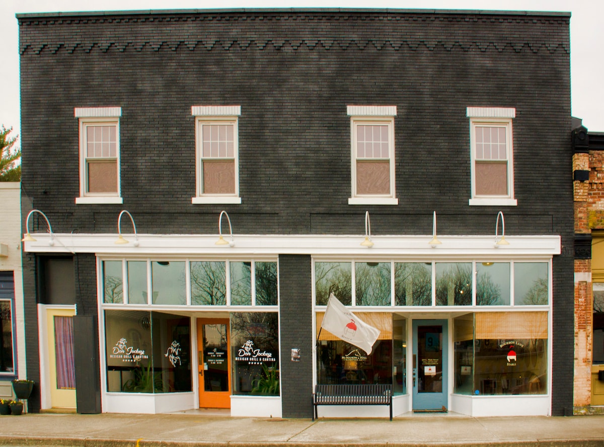 Discover the perfect blend of history, charm, and excitement at The Top Shelf in downtown Versailles. Our beautiful two-bedroom apartment on Main Street puts you steps away from restaurants, a bourbon bar, coffee shop and park. Centrally located with Keeneland Racetrack and Kentucky's most celebrated distilleries like Woodford Reserve, Buffalo Trace, and Castle & Key, just minutes away. The Top Shelf is the ultimate destination for those seeking comfort, style, and adventure in Versailles, Ky.