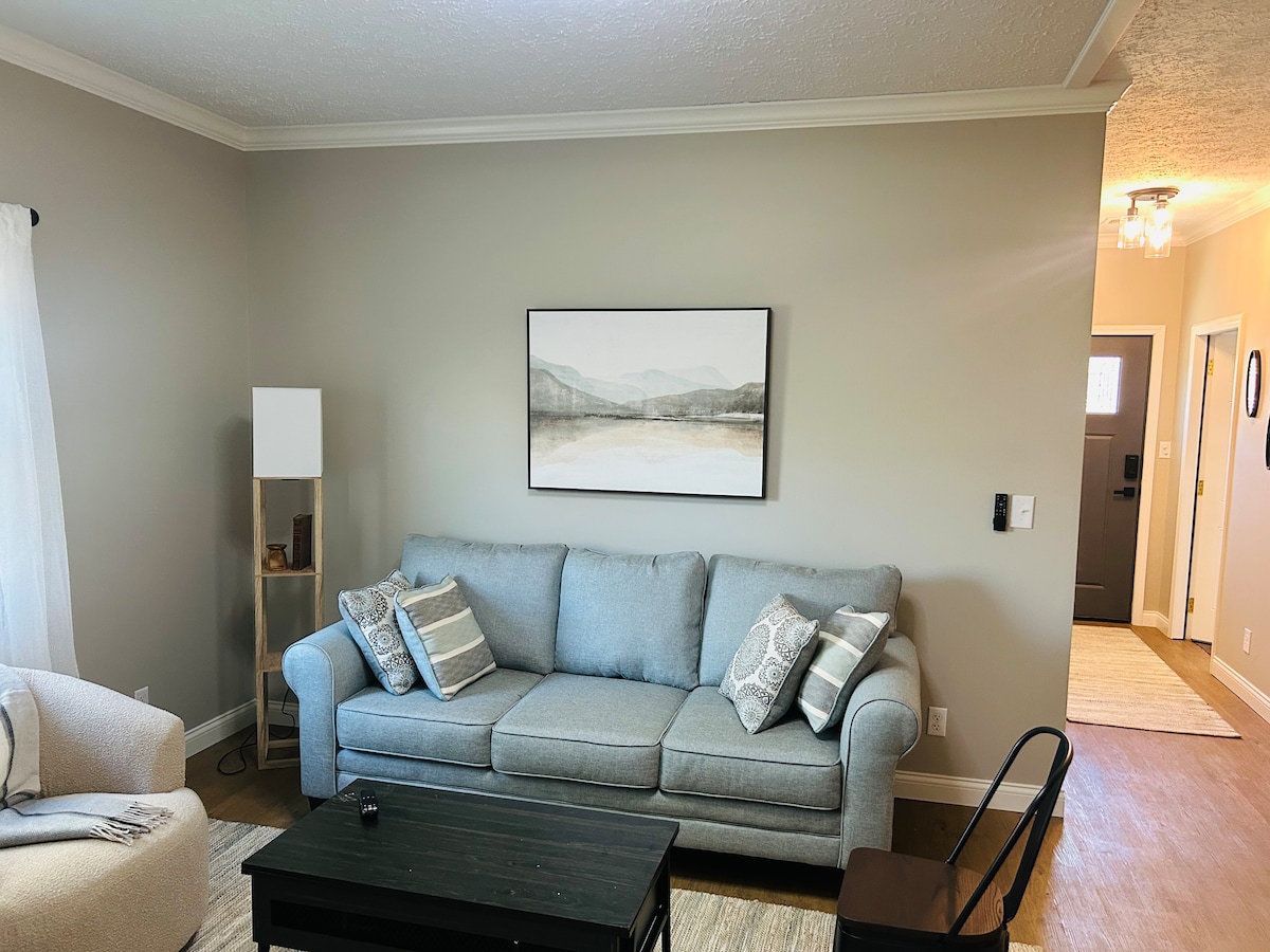 For up to 2 adults and 2 kids. Escape to our charming, centrally located apartment in the heart of Wilmore, Kentucky. Nestled in a peaceful neighborhood, our space offers a tranquil retreat for visitors seeking comfort, convenience, and a touch of Southern hospitality. You'll immediately feel at home in our cozy and thoughtfully designed apartment greeted by the open-concept living area. The fully equipped kitchen, tranquil bedroom, and well-appointed bathroom will ensure a comfortable stay.