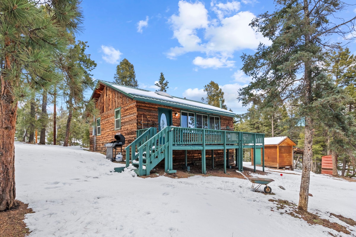 Looking for a quiet and secluded mountain getaway? This charming cabin on 31 acres that borders Pike National Forest is the perfect place to escape the hustle and bustle of everyday life. Enjoy breathtaking views of the surrounding mountains from the cabin's spacious deck, & keep an eye out for wildlife. The mountain getaway vibe is complete with a new hot tub, wood-burning stove & amazing views. You’re just a short drive from several mountain towns and 2 hours from Denver International Airport.