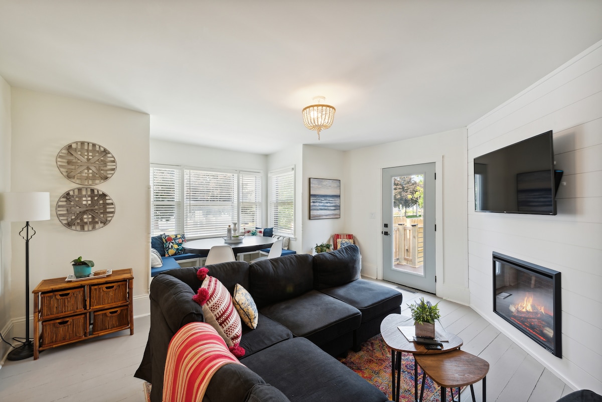 If you love being in the heart of everything with easy off-street parking and every shop, restaurant and the beach just a short walk away, you’ve found your perfect spot! This bright, freshly remodeled two-story home has 2 bedrooms and 2 baths and comfortably sleeps up to 6. You’ll love the cozy queen in the primary bedroom, twin-over-twin and twin-over-full bunks in the guest room, plus two big flat-screen TVs. It feels like your own little downtown retreat