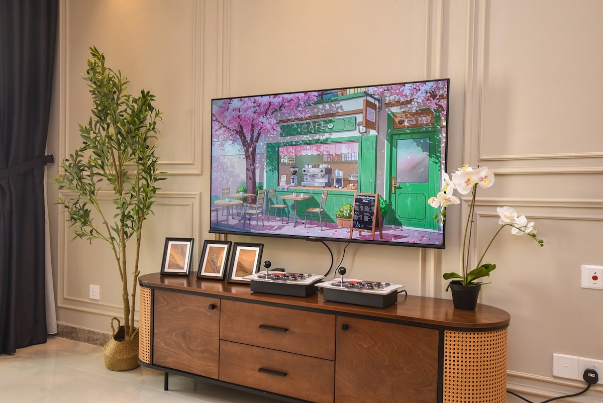 Private Luxury Suite | Walk to KSL Mall • Walking distance to KSL Mall • Cyberpunk-inspired futuristic design • Private Jacuzzi for relaxation • Immersive cinema experience with surround sound • King-size bed with 12-inch premium mattress • Pull-out sofa bed Boldly designed with neon accents and futuristic details, this suite blends comfort with a striking cyberpunk atmosphere. Perfect for couples, small business teams, or small families and memorable stay in the heart of Johor Bahru.