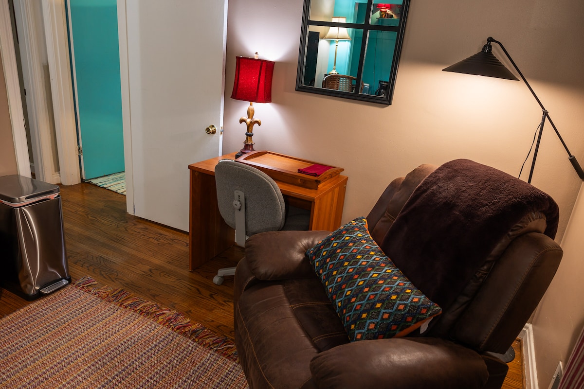 Selected by Architectural Digest as best Airbnb in Kentucky. Sink into the rounded, studded armchair under exposed wooden beams at a characterful retreat with minimal, modern style. This historic space contrasts deluxe touches including the 6-foot soaking tub with sash windows and a sliding barn door. This fully furnished apartment is perfect for a getaway weekend or for short to medium rental as an executive apartment. The historic property has been lovingly renovated as a luxurious apartment with high-end finishes while maintaining the historic character of its past as a carriage house. You enter the apartment through a hallway that houses a dedicated washer and dryer. Upstairs features a large living/working space, a beautiful kitchen with brand new-high end appliances, and a 50" 4K smart TV. The sliding barn door separates the bedroom, where you will also find a large walk-in closet, a marble bathroom with a 6 foot soaking tub, and a brand new queen sized Tuft and Needle mattress. We will meet our guests and orient them to the house and neighborhood, or provide self check-in depending on preference. For the remainder of your stay, we will be close by for any additional needs. Cherokee Triangle is one of the most historic neighborhoods in Louisville, built in the late 19th century and part of the larger Highlands area. The tree-lined streets are a short walk from the restaurants, bars, and boutiques on Bardstown Road. You do not need a car around here - everything is a short walk away. Parks, restaurants, shops, grocery stores are all within 5 minutes on foot. Downtown or Churchill Downs are is a 5-10 minute drive away. Street parking is available.