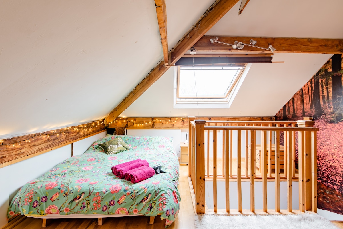 Cosy and private attic space available in a comfortable Victorian house, 30 minutes from jct 29 of the M1. We are very close to the Peak district, just 10 minutes away by car, and Graves Park and woods are behind the house. We live on a main bus route, with cinema's, theatres, Climbing works, and other venues, and the city easily accessible. Local cafe's, pubs, micropub's and independent shops are also a minutes walk away in this thriving location of Woodseats.
