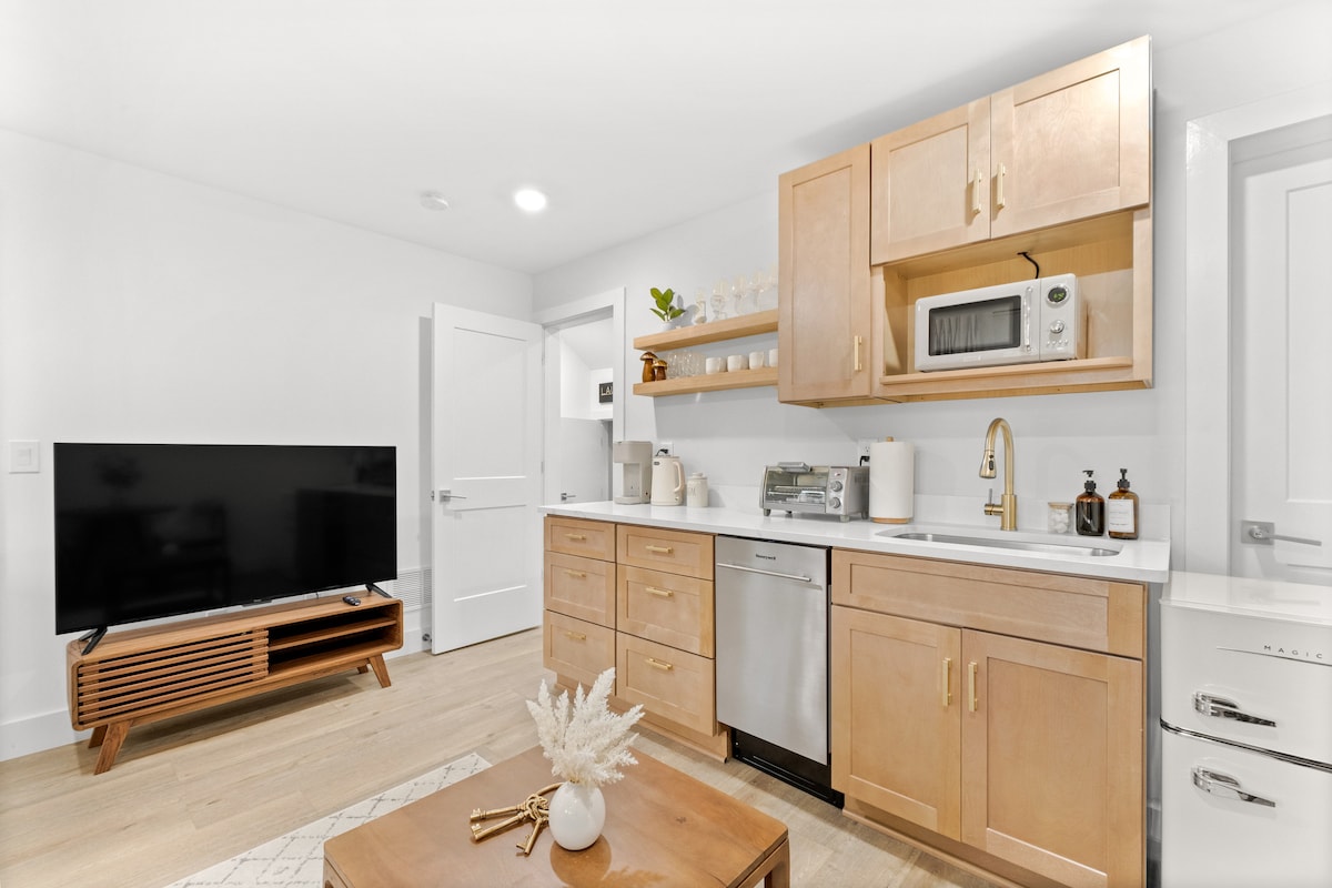 Spacious, light, stylishly minimalistic & HEPA filtered entire basement suite in a quiet residential neighborhood. Separate entrance, large bedroom and separate family room, kitchen equipped for cooking, W/D, home gym, sauna, sound machine and many more details to make our guests feel at home. Walking distance to shopping, dining, park, and a playground. We live upstairs, when at home, we respect our guests’ privacy, but the suite is below the main level of our home with a separate entrance.