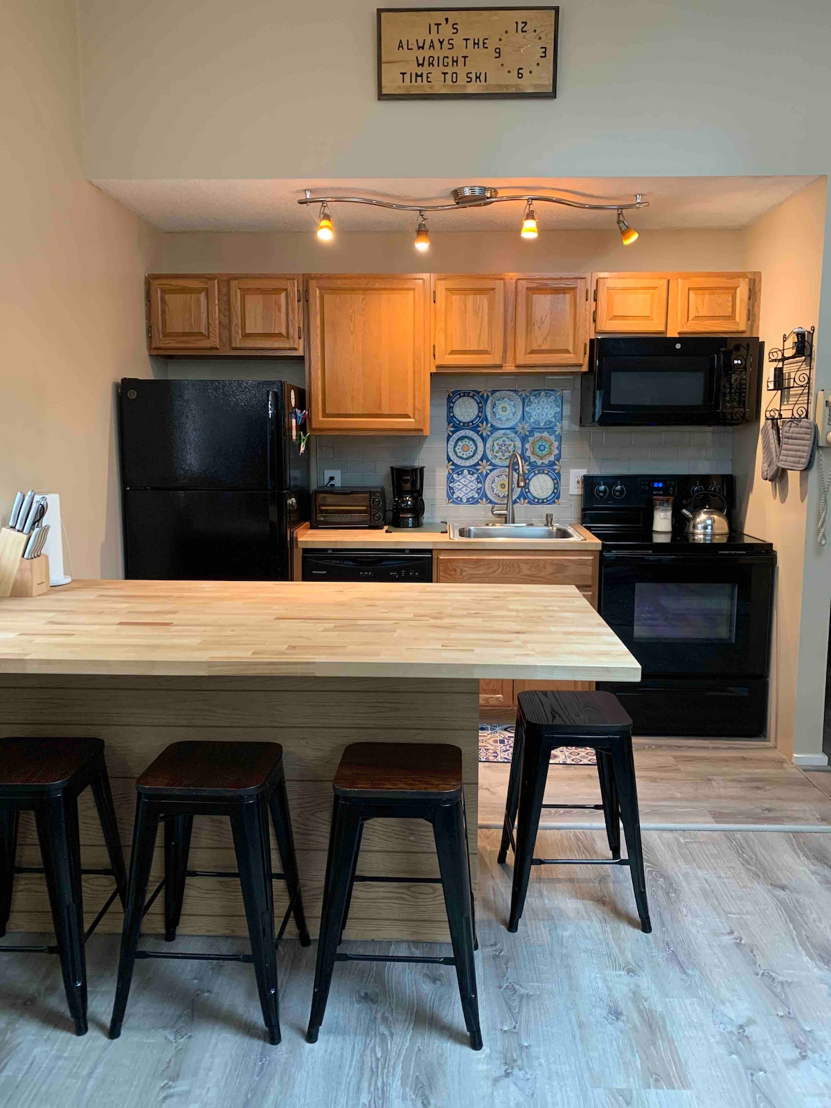 KimBills' is a newly renovated, cozy, first floor condo located at Attitash Mtn. Village, just minutes from the Saco River. Full kitchen well stocked with necessities, gas fireplace, A/C, Murphy bed and pull-out sofa bed with new, comfortable mattresses. Cable/internet, 55" TV, & board games. Large deck with lighting. Guests enjoy full use of all Attitash Mtn. Village amenities including river access, pools, sauna, hot tubs, tennis & basketball. Close to shopping and area attractions.