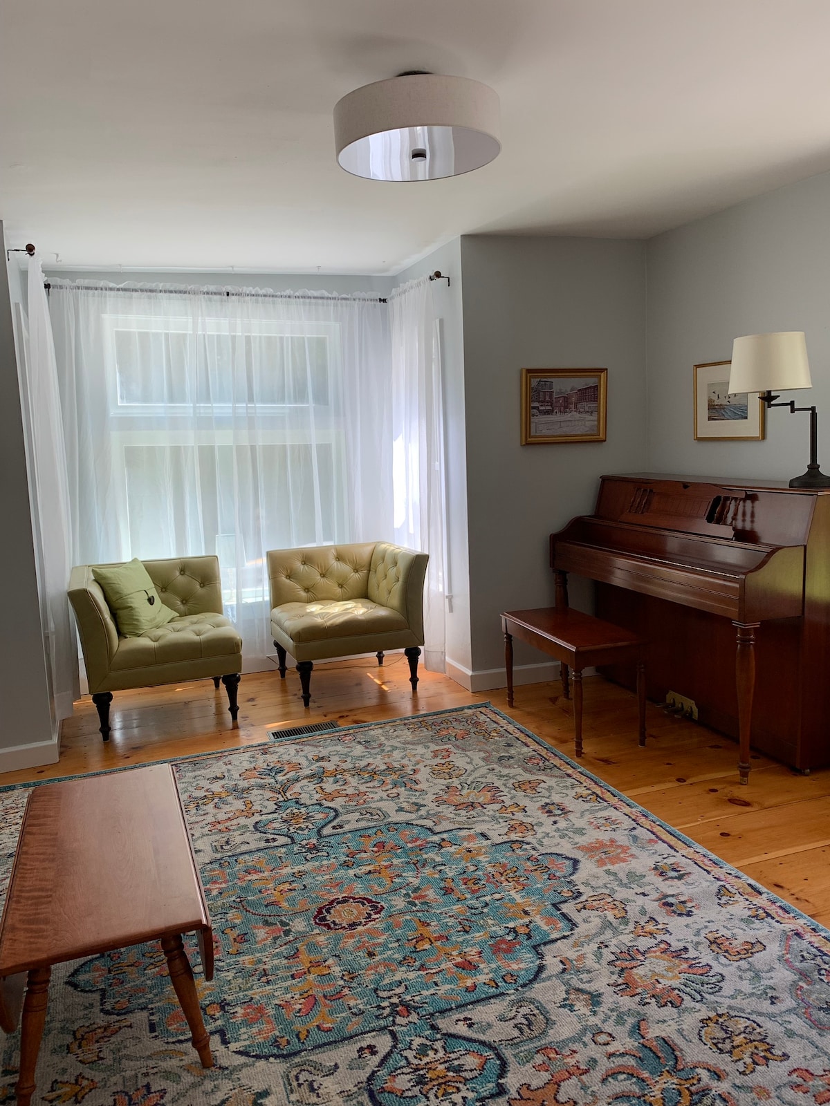 This is a farm house style lodging with the apartment as seen,on the second floor accessible with stairs. Bathroom with stand up shower. A furnished Kitchen. 2 Bedrooms with queen beds. There is Wifi ,TV, and a work table. Located in the heart of the Upper Valley. In town on the Main Street. We are 5 miles to Dartmouth College and Hospital. Close to retail,restaurants. We have been vaccinated , boosted, would like to remain contact-free when possible. We are available if you have questions.