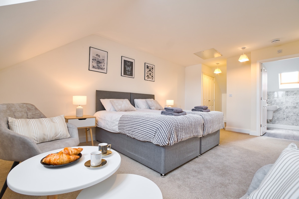 Welcome to our brand-new one-bedroom Airbnb flat, perfectly located in the heart of the city! This stylish and modern space is designed for comfort and convenience, a fully equipped kitchen, secure gated parking, fast fibre wi-fi, ideal for couples, families, solo travellers, or business professionals looking for a home away from home!