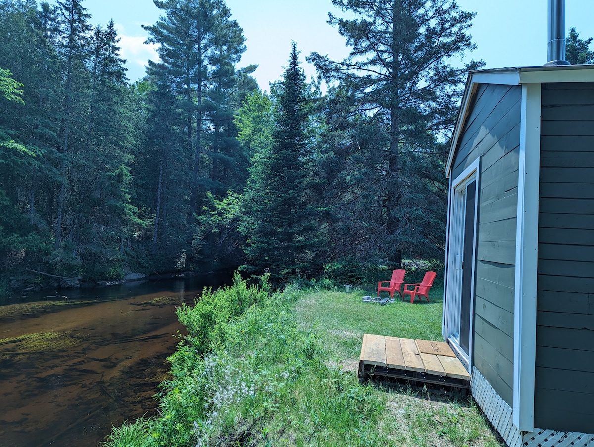 Stay beside the North River in our charming guesthouse cabin. Private riverfront to launch canoes or kayaks Public Boat launch across the road. Short drive to several lakes, the Trent Severn, multiple parks, extensive off roading & snowmobiling trails. Single loft with two twin beds that can easily be put together to make a king and a comfy queen size sofa bed on the main floor. Wood stove is the primary heat. Well cared for pets and their responsible owners are welcomed!