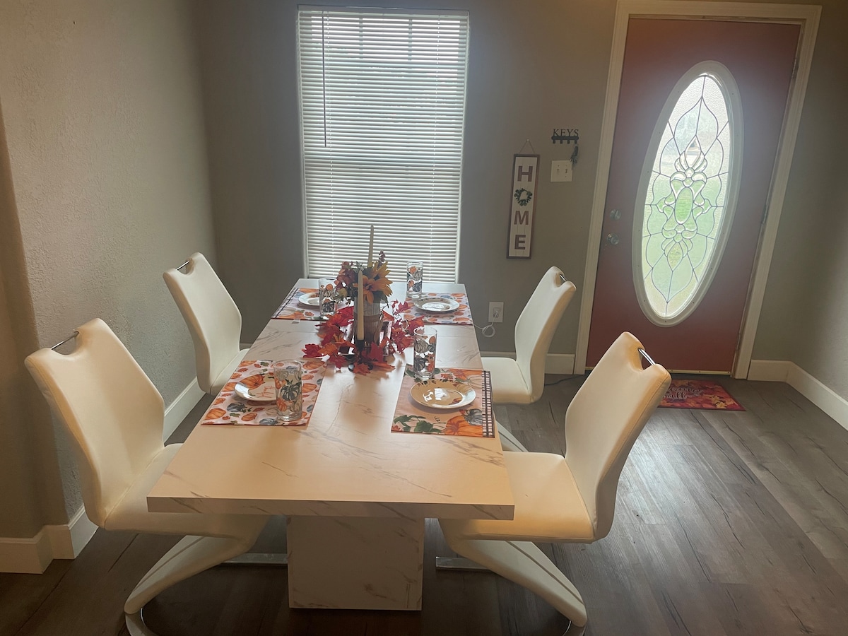 Fully renovated home in a great location! Fall in love with the open floor plan, gorgeous kitchen, and covered patio. The fenced in backyard gives you some privacy to enjoy your evenings with your other guests, or even for some "alone time" to read or work outside. Everything in this home has been redone, so it should be a worry-free experience! Enjoy old school gaming and cornhole while you are here!!