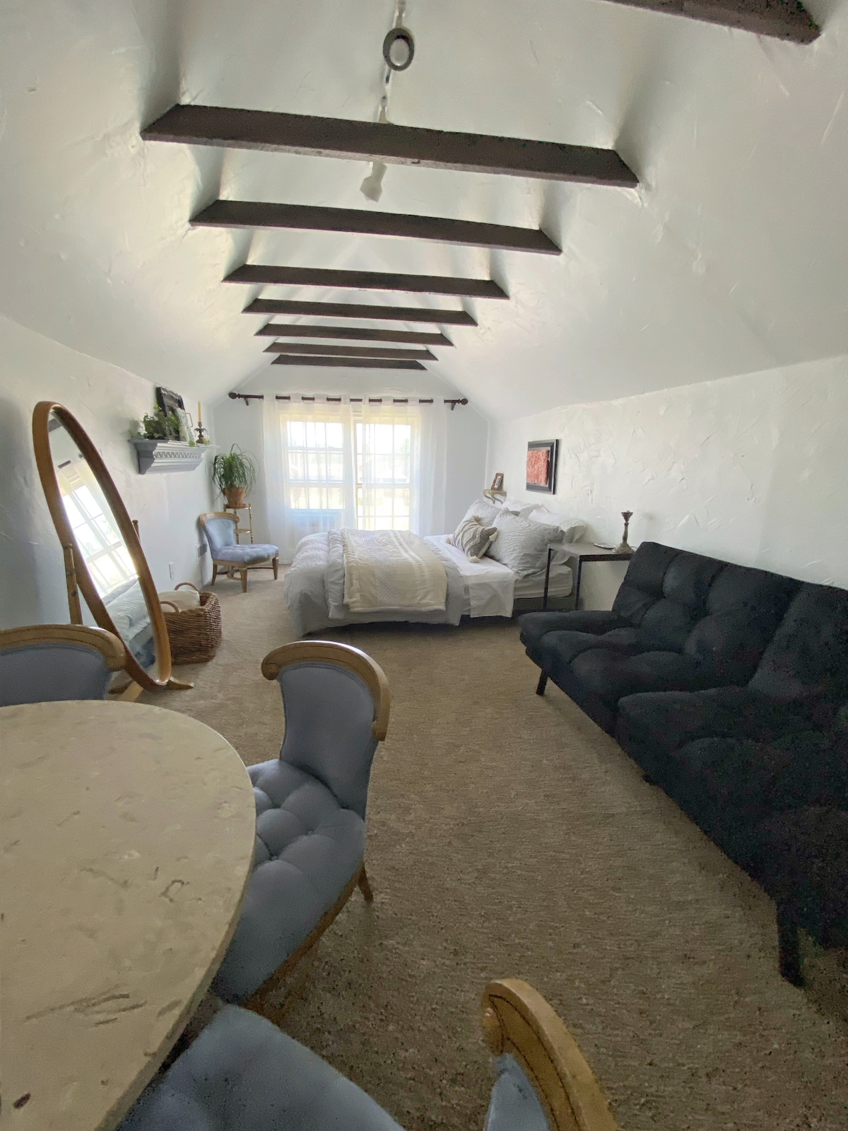 This property is a remodeled dairy barn that is 750 sq ft with 10ft ceilings. The remodel was done with high end materials & has hardwood floors everywhere but the bathroom. Floor to ceiling cabinetry make this great for longer stays. We lived in it for 3 years with no problem! It has a built in king-sized bed. New washer/dryer unit installed for you! Get away from the hustle bustle of city living & enjoy the fresh country air & quiet environment. You'll love the covered patio and parking!