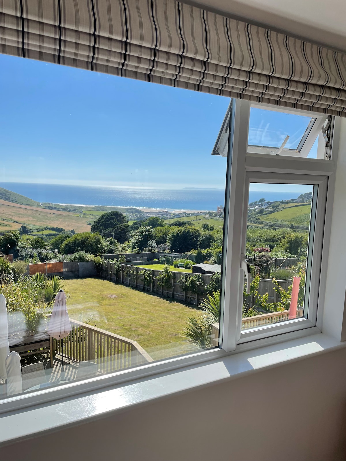 Blue Pebbles is a modern two-bedroom split-level house (sleeping 4) with balcony, terrace and magnificent sea views. It is close to all three beaches: Combesgate, Barricane and Woolacombe. Combesgate Beach is almost opposite and it is less than a ten minute walk along the Esplanade, to Woolacombe’s famous beach (voted The Times Beach of the Year 2021). The coastal path is also directly opposite. Blue Pebbles is ideal for couples, families with children and well-behaved dogs.