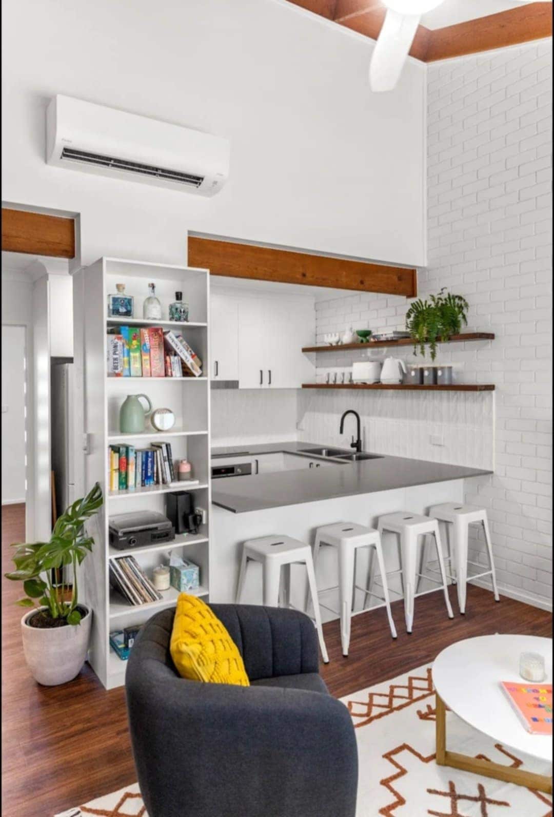 Enjoy soothing ocean sounds (beach just 50 meters away). Kick back and relax in this calm, stylish space. A café, takeaway, corner store, and chemist are just 150-meter, pub is 200-meters away. All the dining options in Woolgoolga are just a 10-minute drive away. Explore the stunning coastline, or simply unwind in this quiet coastal town. Breathe in the salty air and fall asleep to the sound of the waves. Beach access is close by. Sleeps 5 people, with a trundle available under the queen bed.