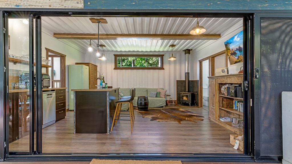 Inspired by tiny homes all over the world, this 30m2 space has been architecturally designed to make you feel cosy and comfy at anytime of year. Enjoy a 30sec walk to the beach, local coffee or food, or snuggle up in front of the fireplace in those colder months. Suitable for a couple (sorry no kids) It’s a loft, so the bedroom area has ladder like steps and a low roof. But it all adds to the charm. Enjoy sitting in the tree tops and watching the world go by in our little beachside town.