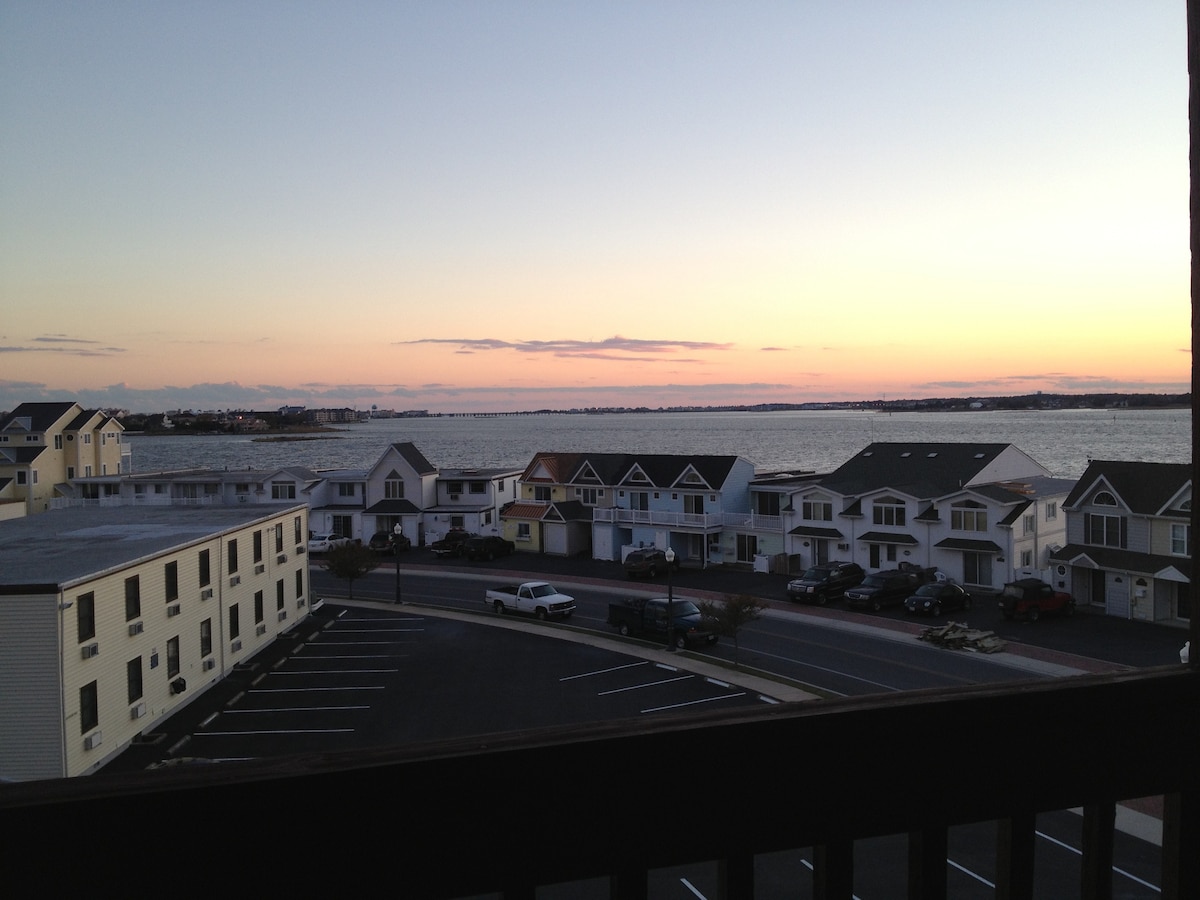 LOCATION! LOCATION! Nothing but excellent reviews for this roomy, affordable and comfortable 1 bed/2 full bath ocean block condo. Relax and unwind with coffee or happy hour on spacious deck with views of the ocean or the bay. Much desired location in OC, Steps from the beach, bay and popular restaurants and bars Seacrets,Fager'sc Macky's .