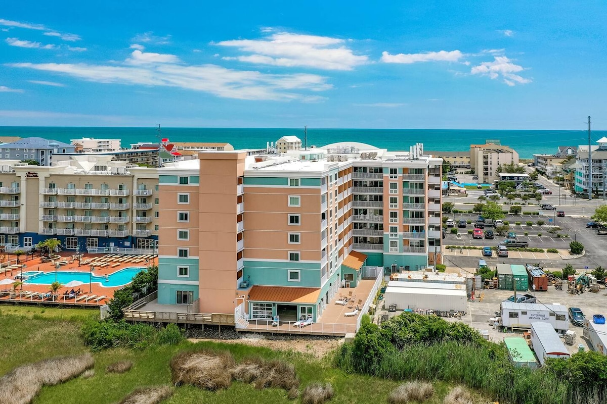 FULLY RENOVATED!!! An efficient space in a GREAT location for your next beach getaway! Upon arrival, no need to get back in your car- walk to breakfast/lunch/dinner/late night hangouts, grocery, mini-golf, OC Center of the Arts, playground, beach or Assawoman Bay. Full kitchen for your convenience if you choose to dine-in. One reserved parking spot in the condo lot. Oceanfront pool with large concrete pool-deck! Fitness Center & coin operated laundry facility.