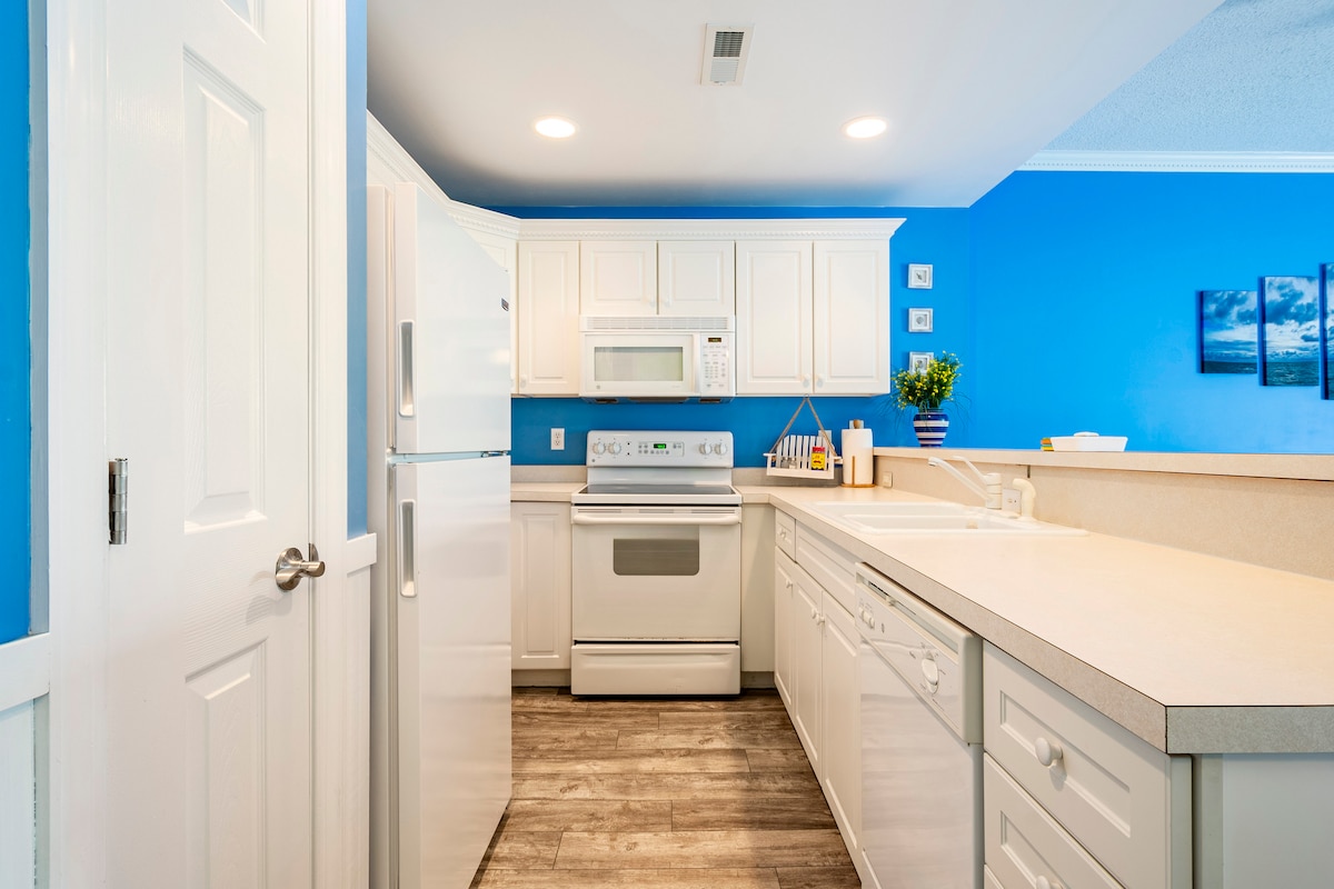 Beautiful oceanfront condo in an unbeatable location with fabulous amenities. The condo is conveniently located to a variety of restaurants, shops, a grocery store, and so much more. Guests will have free access to Wi-Fi, Roku channels, and direct tv. The condominium building includes an indoor pool, outdoor and baby pool (seasonal), arcade room, updated playground, movie theater, deli and ice cream shop, tennis and pickleball courts, basketball court, billiards room, sauna and fitness center.